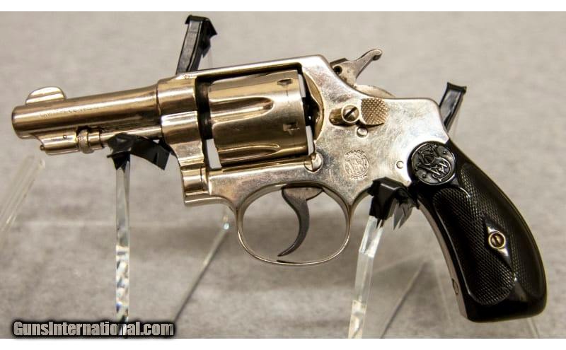 Description: Smith & Wesson Hand Ejector Third Model, chambered in .32 S&W Long. Features include: 6 shot fluted cylinder, 3-1/4 barrel, nickel finish, grips of checked hard rubber with "S&W" monogram, round butt. Serial number on cylinder matches the one found underneath the grips and indicates this particular model. Bore could use some cleaning. .32 S&W Long SOLD Chambers: .32 S&W Long Metal Condition: Good Bore Condition: Good Barrels: 3 1/4' Sights: Iron Item Location: Fort Mill, SC |