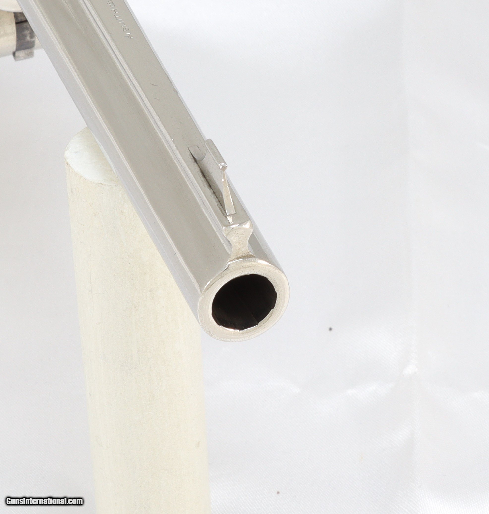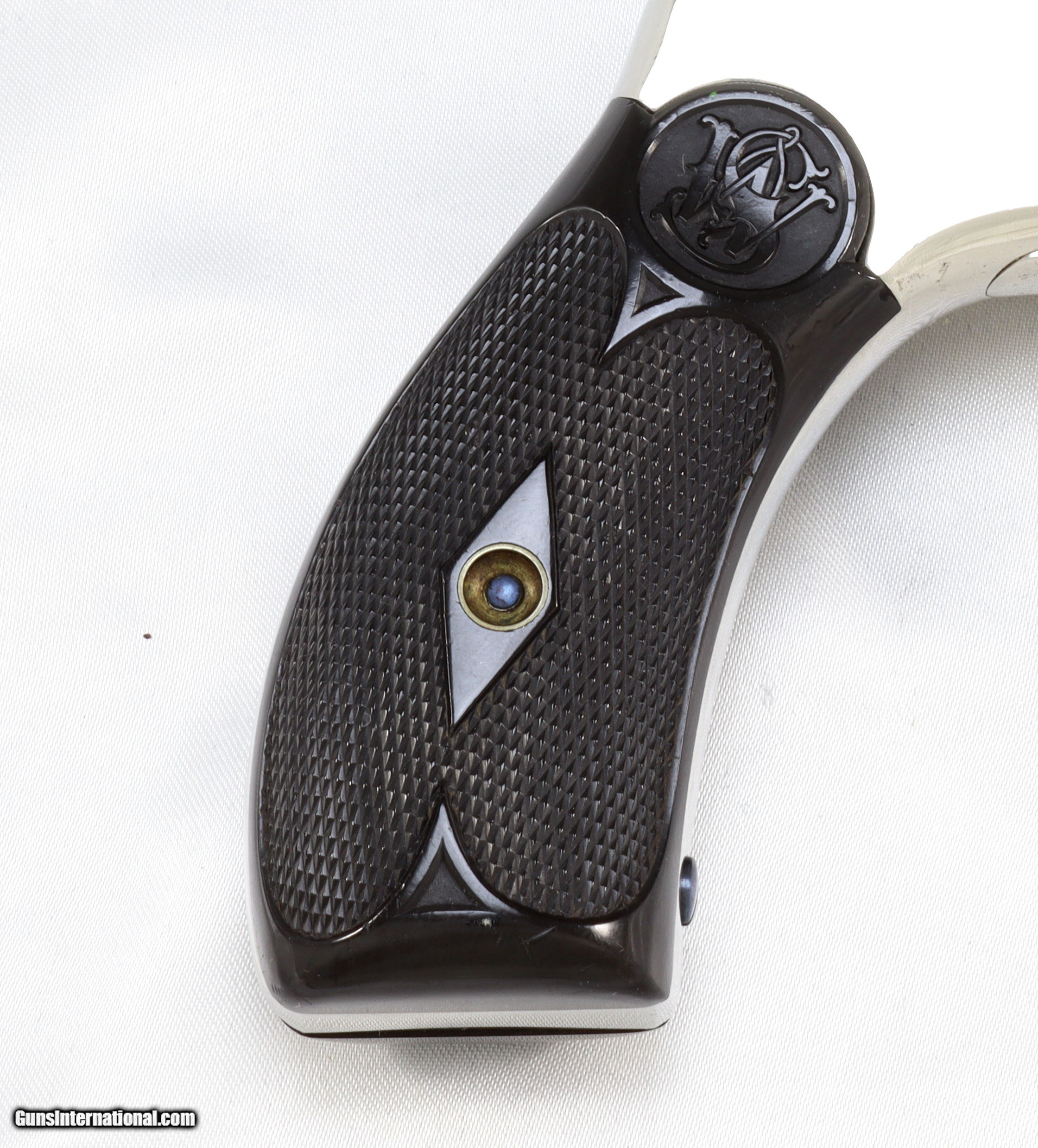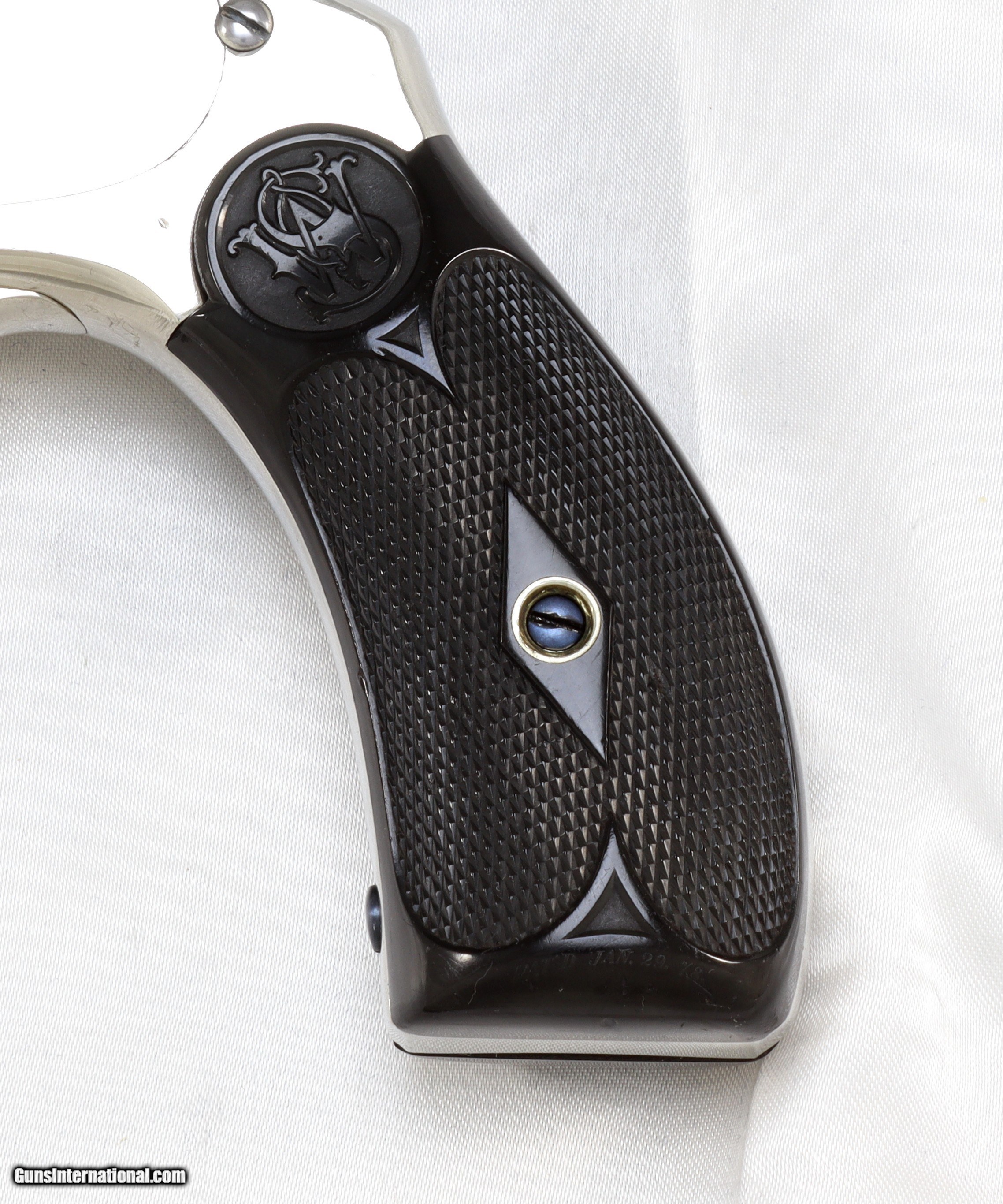 Description: Smith & Wesson New Model #3 Revolver in .44 Russian. SN #33750. THIS ANTIQUE WAS MFG. IN 1889. 6 1/2" Barrel with an EXCELLENT Bore for it's age with STRONG RIFLING. Re-Nickeled at some point in the past. During this process, the Serial Number had been ground off the butt of grip and the Smith & Wesson logo off the right side of frame. Serial Number is on the cylinder and under the rear sight. Nickel plating is in VERY GOOD condition with some very light handling marks on the frame. Original Plastic Grips are in EXCELLENT condition for their age and have the original Patent Date of January 29, 1878 on them. 6 round capacity. VERY NICE CONDITION ALL-AROUND. Weight: 2.4 lbs. Trigger Pull: 4 lbs. AS AN ANTIQUE, NO FFL IS NEEDED TO PURCHASE. More photos available upon request. Ships to Lower 48 W/ Insurance $50.00. SOLD Curio/Relic: Yes Antique: Yes Handgun Caliber: .44 S&W Russian Manufacturer: Smith & Wesson Model: New Model 3 Serial Number: 33750 Barrel Length: 6 1/2 Condition: VG for Age Metal Condition: VG for Age Bore Condition: Excellent For Age Finish: Nickel Weight: 2.4 lbs. Manufacture Date: 1889 |