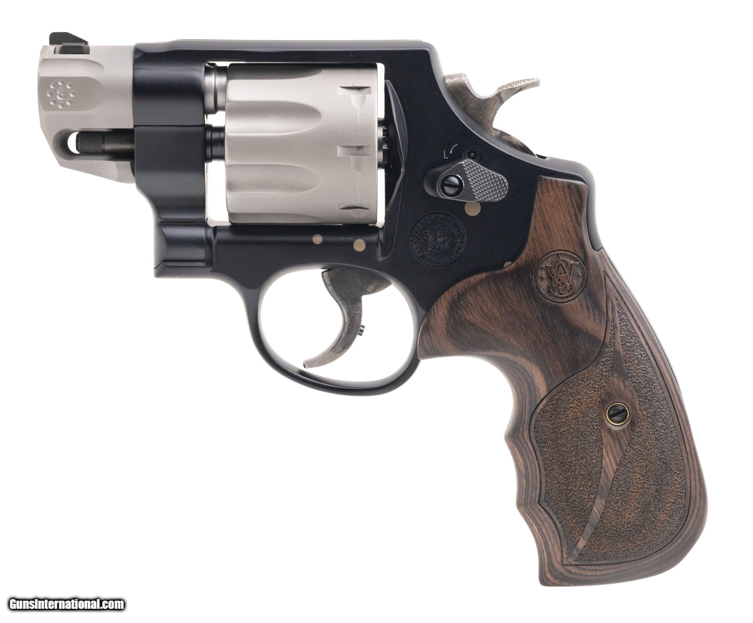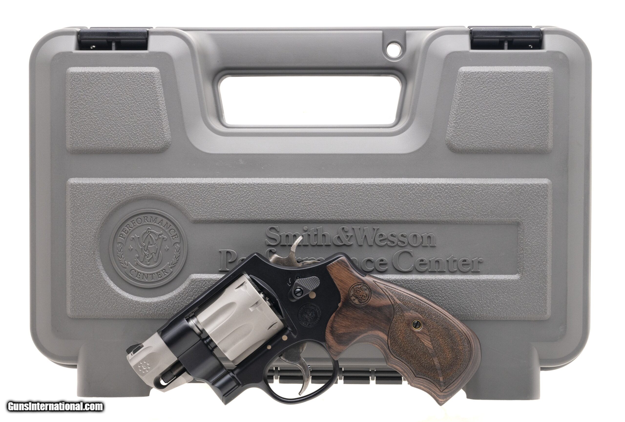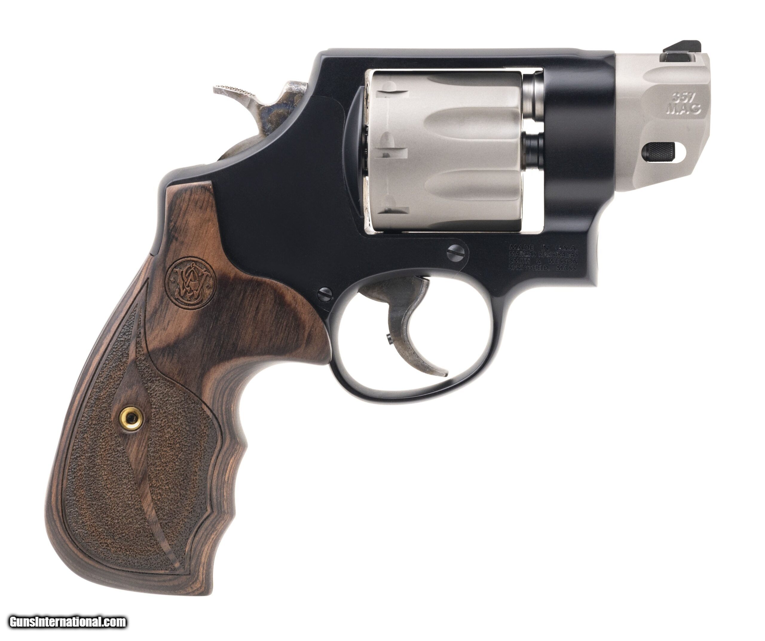 Description: "Smith & Wesson PC 327 Revolver .357 Magnum. Performance Center Tuned Double Action Revolver with an 2"" Stainless Steel Barrel. Matte Finish, Titanium Barrel Shroud & 8rd Cylinder, Scandium Alloy N Frame, and Wood Grips. NEW. UPC: 022188702453 (STOCK PHOTO) SOLD |