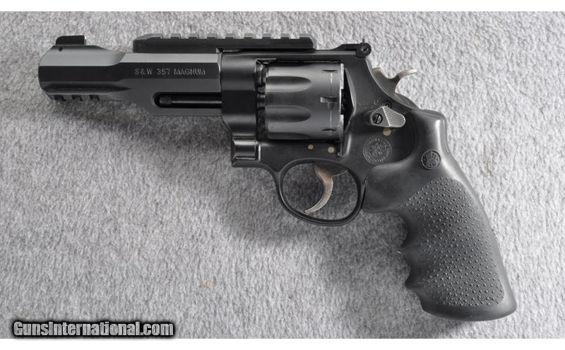 Description: This Smith & Wesson Perfornance Center "Tactical RailRevolver8"has been fired some but, these revolvers were made to withstand thousands of rounds of .357 mag ammo. They were designed for use withor withoutMoon Clips. .357 Mag./ .38 Special SOLD Chambers: 8 round revolving cylinder Metal Condition: Shows a bit of operational wear with cylinder drag mark, holster wear at the trigger guard, muzzle & front of the cylinder Barrels: 5" Stainless Steel with shroud Triggers: Single/Double Action Perfomance Center tuned with trigger stop Sights: Interchangable front sight, Micro adjustable rear leaf, Barrel mounted optic rail & under barrel light rail Item Location: Grand Junction, CO |