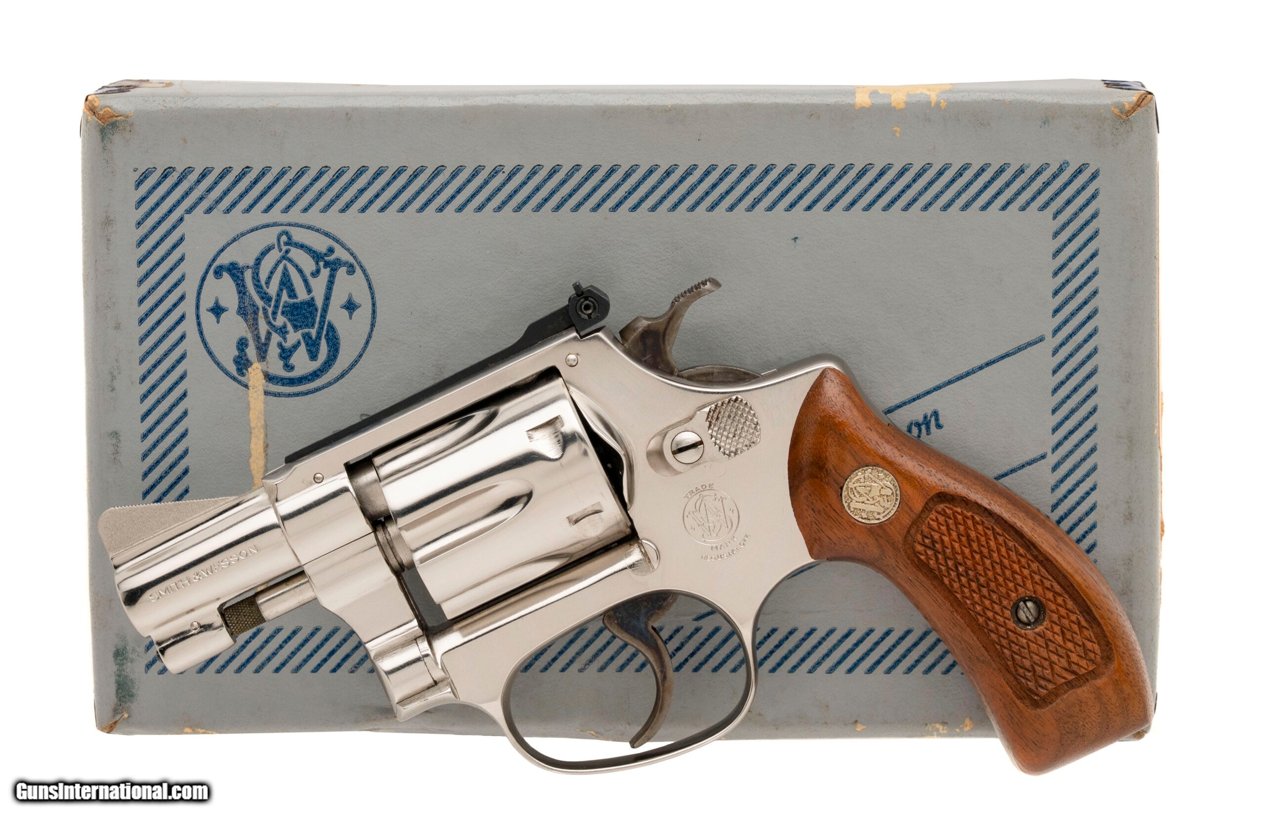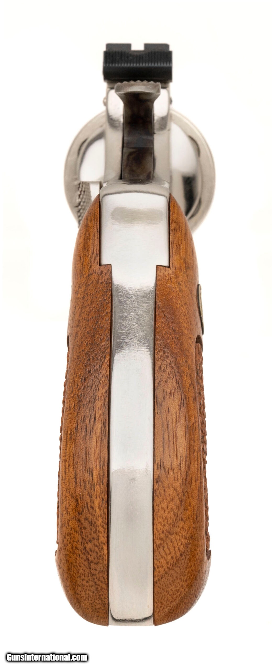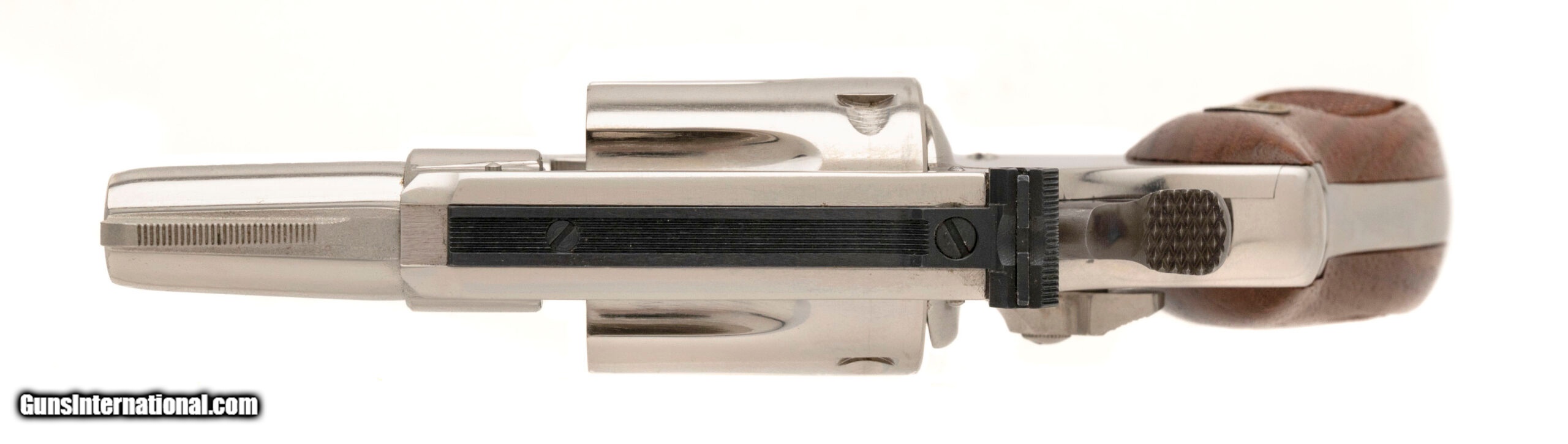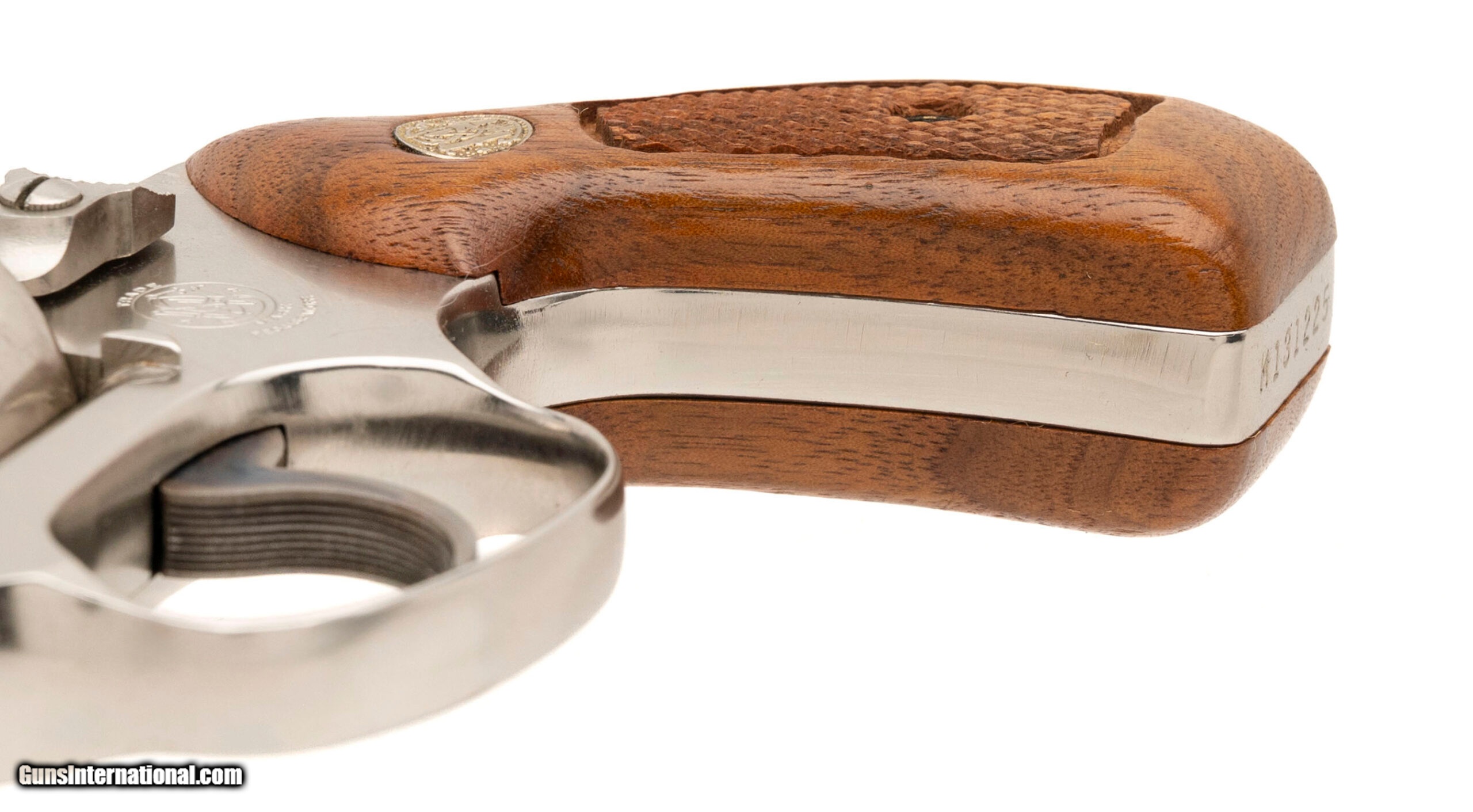 Description: "SN: M131225. 1960s Vintage, .22LR with a 2"" barrel. Scarce and desirable snubnosed nickel plated Kit Gun with checkered wood grips. Overall condition is excellent, with box, papers, and tools. SOLD |