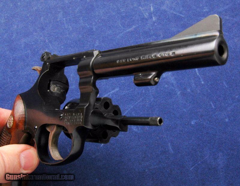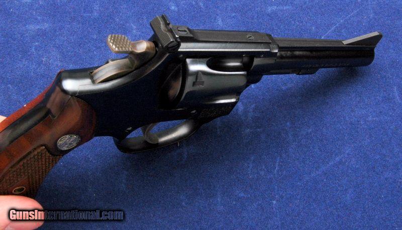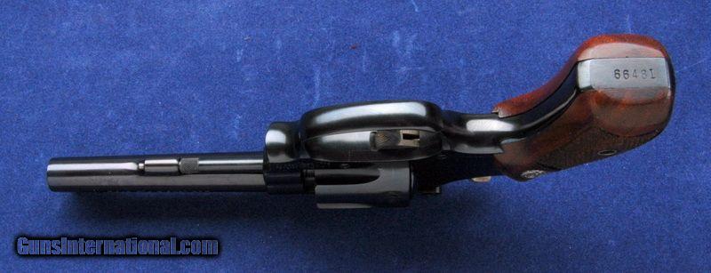Description: Available today is this stunning all original Model 34. Comes in the orioginal numbered box with the wax paper, manual and numbered warranty card. Top collector condition. Mint cylinder and bore. May have been fired, but not likely over 50 rounds. Turn line is minimal, next to no external blue wear. Grips are excellent, tight and perfectly fit. Difficult to upgrade this one. $35 shipping to the lower 48 and 3% surcharge for using a CC. SOLD |