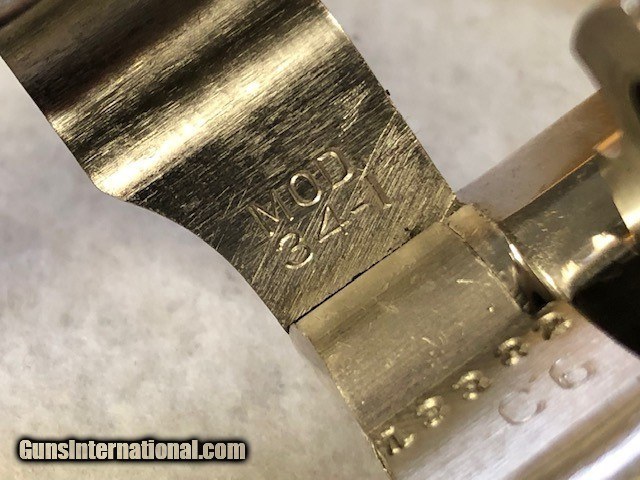 Description: Excellent condition pre owned S&W 34-1, Nickle finish with target sights,Red front insert and white outlined rear sight. Replacement grips with the S&W logo. SOLD Manufacturer: S&W Model: 34-1 |