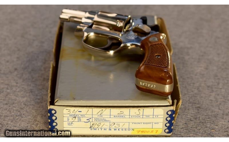 Description: This is a pre-owned nickel Smith & Wesson model 34-1 in .22 Long Rifle with a two-inch barrel .22 Long Rifle SOLD Metal Condition: Very good with a few small scratches and slight cylinder drag marks Wood Condition: Very good with a few small scratches Bore Condition: Clean with bright lands Barrels: 2 Triggers: DA/SA Butt Pad: Checkered walnut grips Weight: 1 Lb. 6 Oz. Sights: "Ramp front, adjustable rear Item Location: Glendale, AZ |