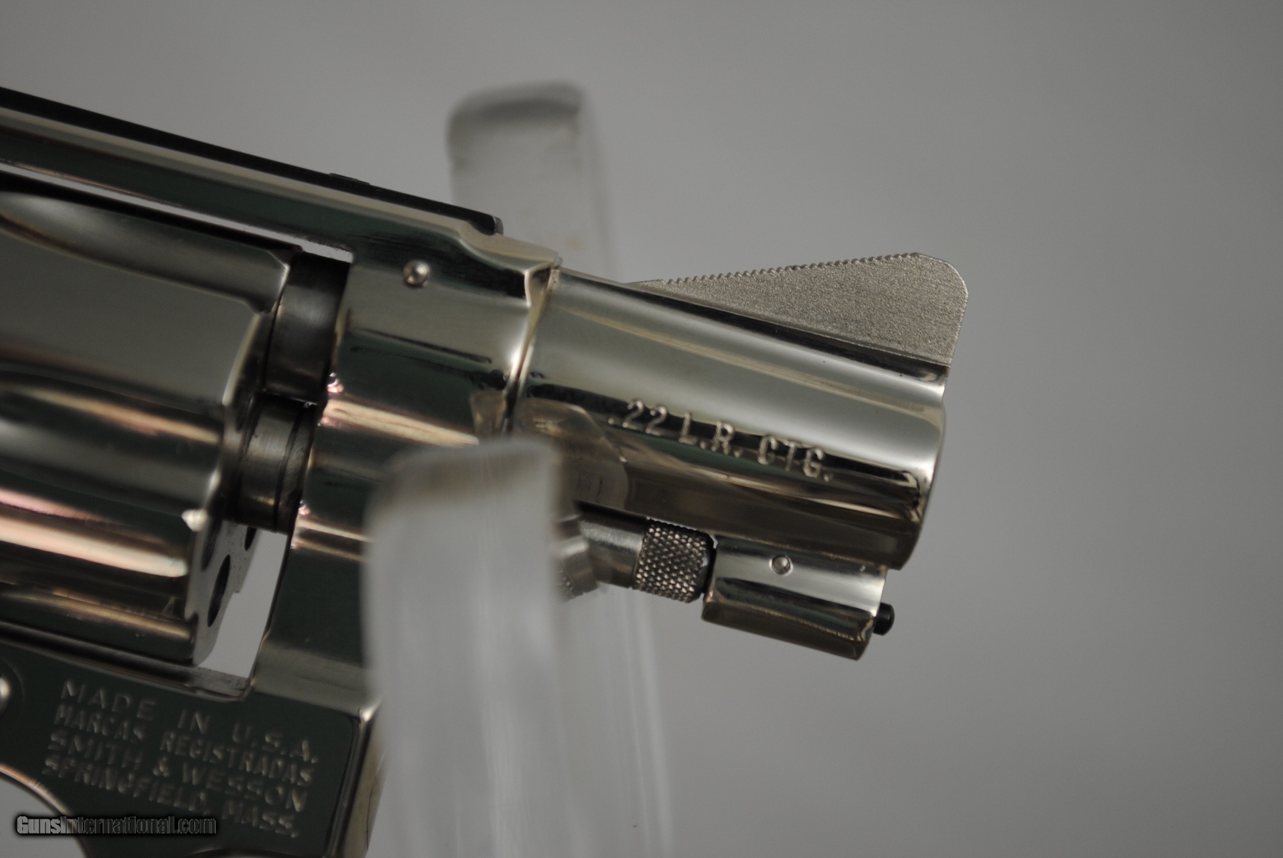 Description: Smith & Wesson Model 34-1 Kit Gun in 22 Long Rifle with nickel finish and 2" barrel. Mint condition with no appreciable wear. Recessed cylinders. Pinned barrel. Shipping is $50. Credit cards Ok with no additional fee. SOLD Handgun Caliber: .22 Long Rifle |