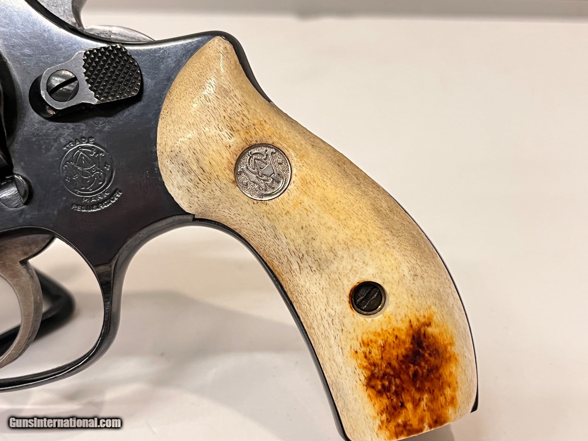 Description: Guns Listing ID: 908701 Smith & Wesson Model 34 .22LR. Used in good to great condition. This pistol has some signs of use various parts. All wear is from normal use. Please check all photos and see below info. Thank you for viewing and God bless! This Smith & Wesson Model 34 chambered in .22LR. It comes in and with the original box and paper work. It has the original wood grips in the box. The grips on the pistol look to be made out of antler and have the S&W medallion in them. The brown coloring on the base of the grips is part of the finish. It holds 6 rounds of .22 long rifle and the barrel is 4\" long. It is a double and single action revolver. The rear sight is adjustable and the front & rear sight are original. The pistol was most likely built late 1971 to very beginning 1972. SOLD Manufacturer: SMITH & WESSON Model: MODEL 34 Caliber Info: .22 LR Condition: Used - Non-Certified Barrels: 4 BARREL Finish: BLUED |