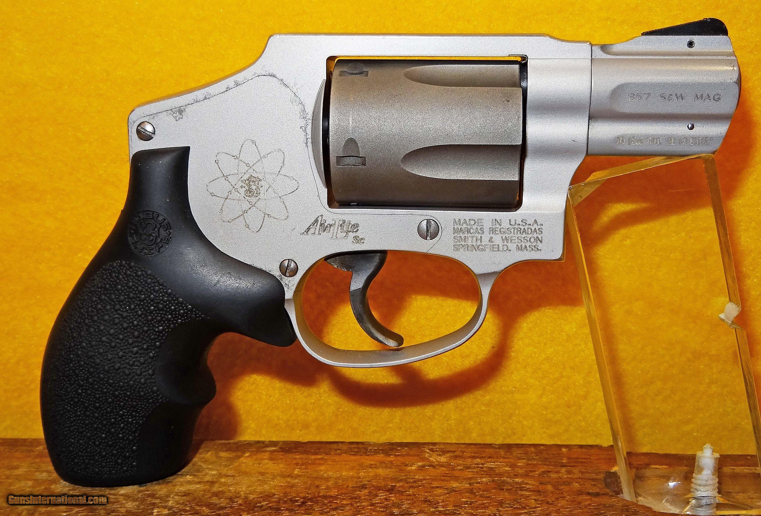 Description: S&W 340SC IN .357 MAGNUM CAL., WITH 2" BARREL. COLOR SILVER. CONDITION 90%. SERIAL NUMBER SCA4963. S&W MODEL 340SC (SCANDIUM), BRIGHT SHINY BORE, GRIPS EXCELLENT, FINISH WEAR ON RECEIVER, COMES WITH HARD CASE, GREAT CARRY GUN, 90% OVERALL CONDITION, OUR STOCK # D1317. SOLD |