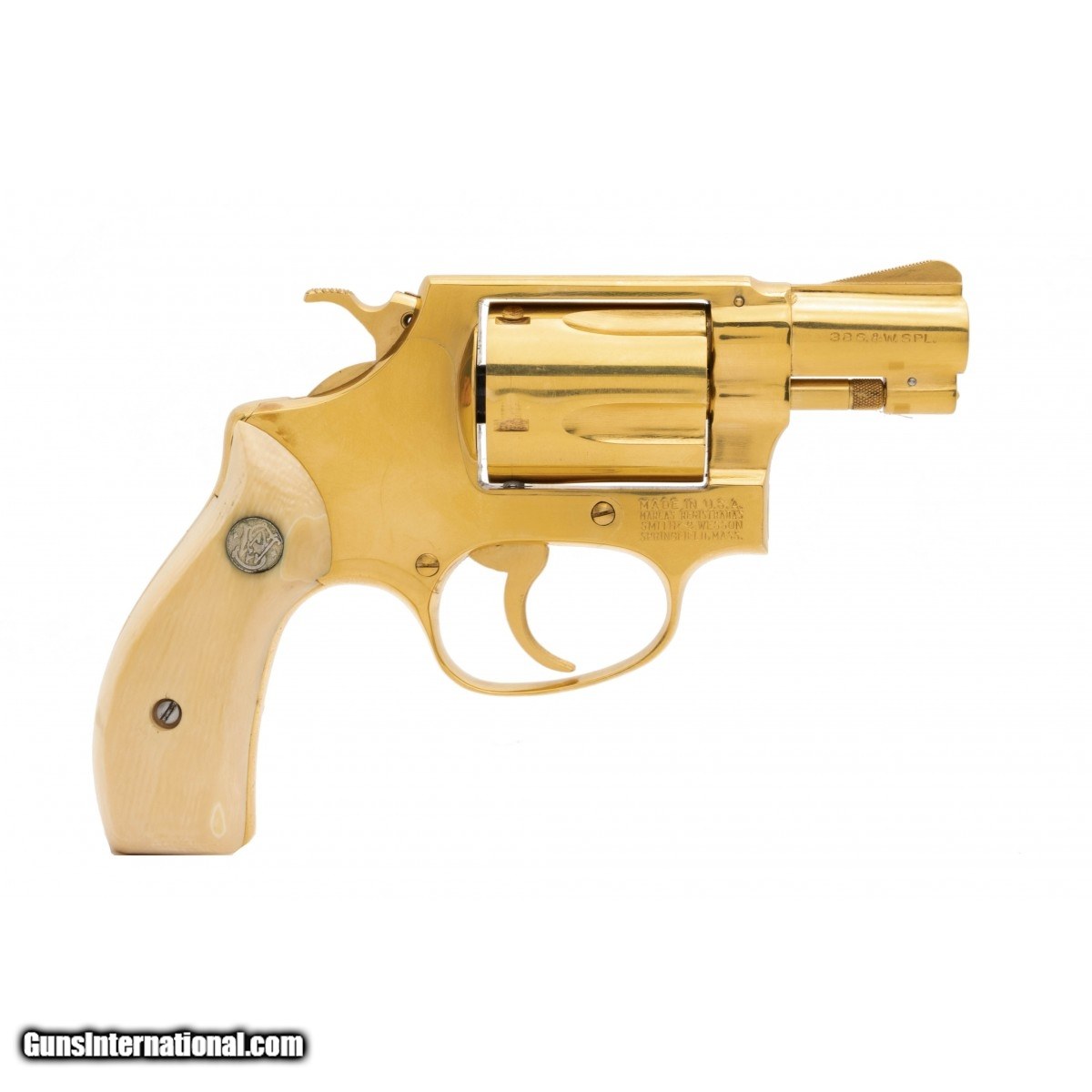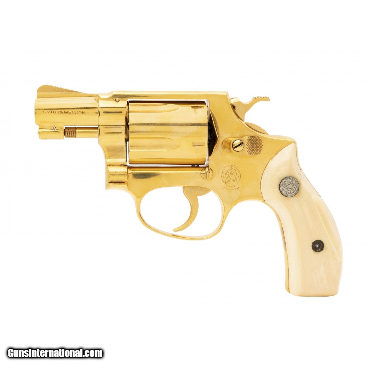 Beautiful gold plated snubnose revolver. Has genuine ivory grips with S&W medallions. Excellent condition.