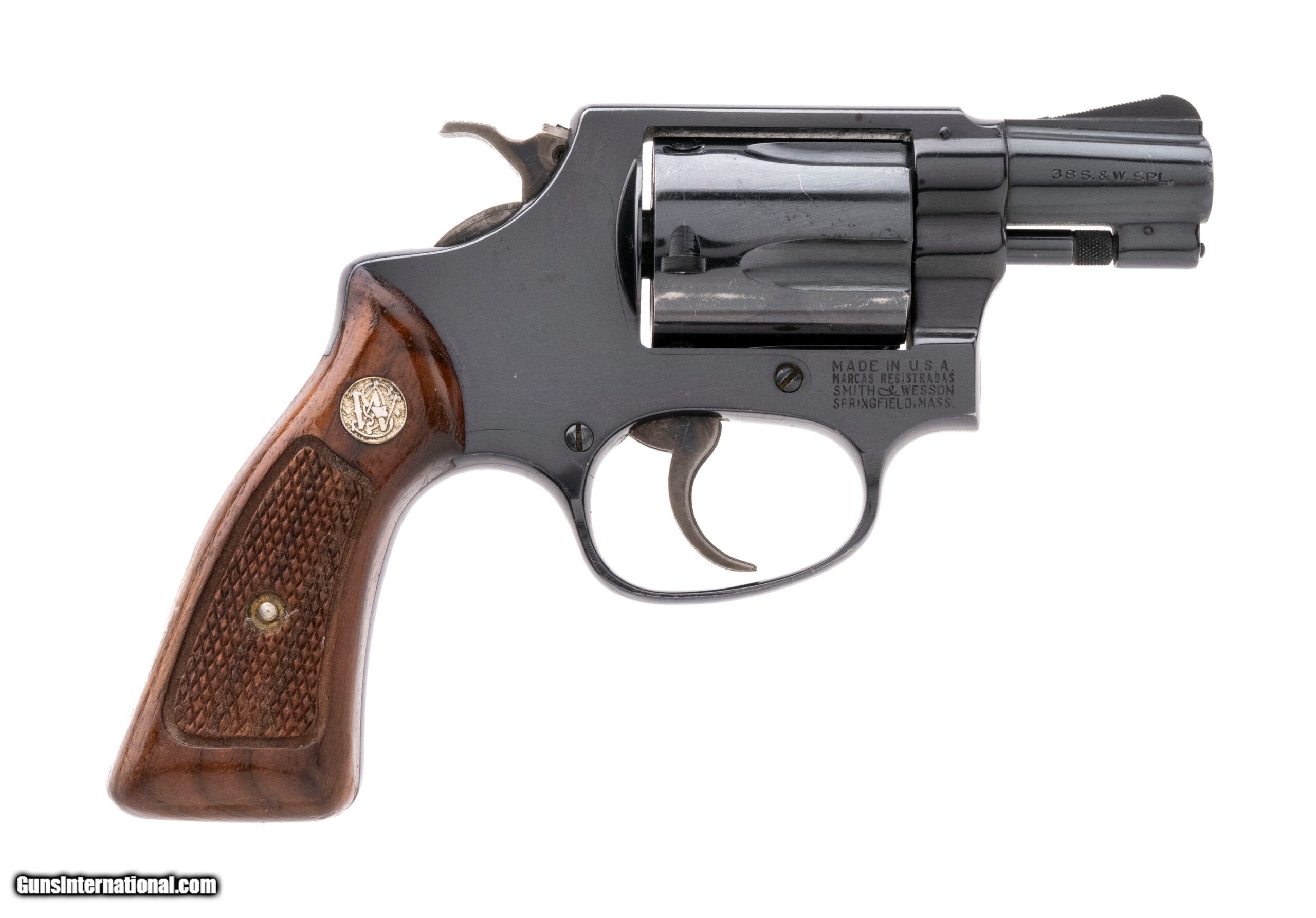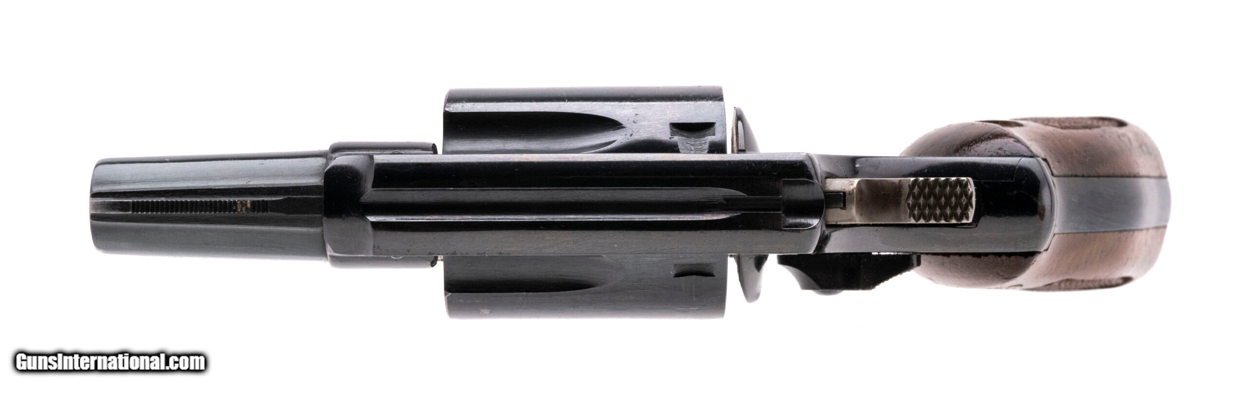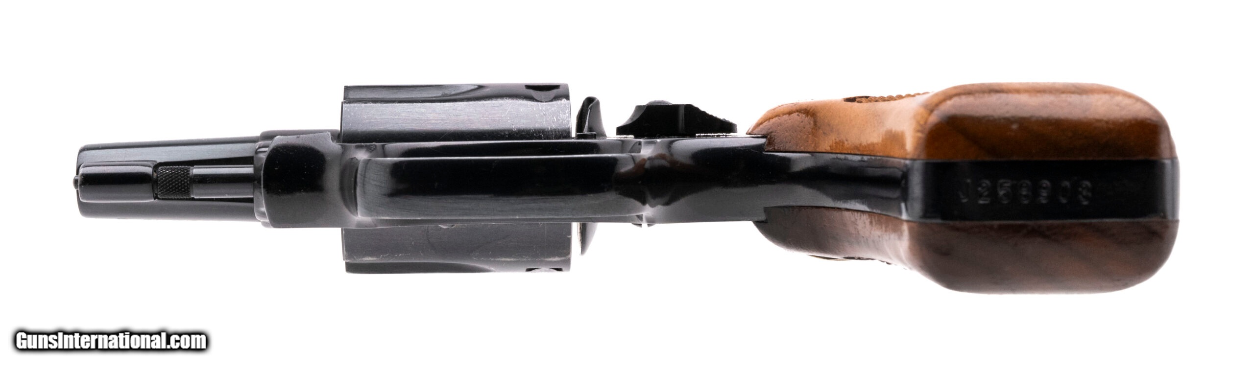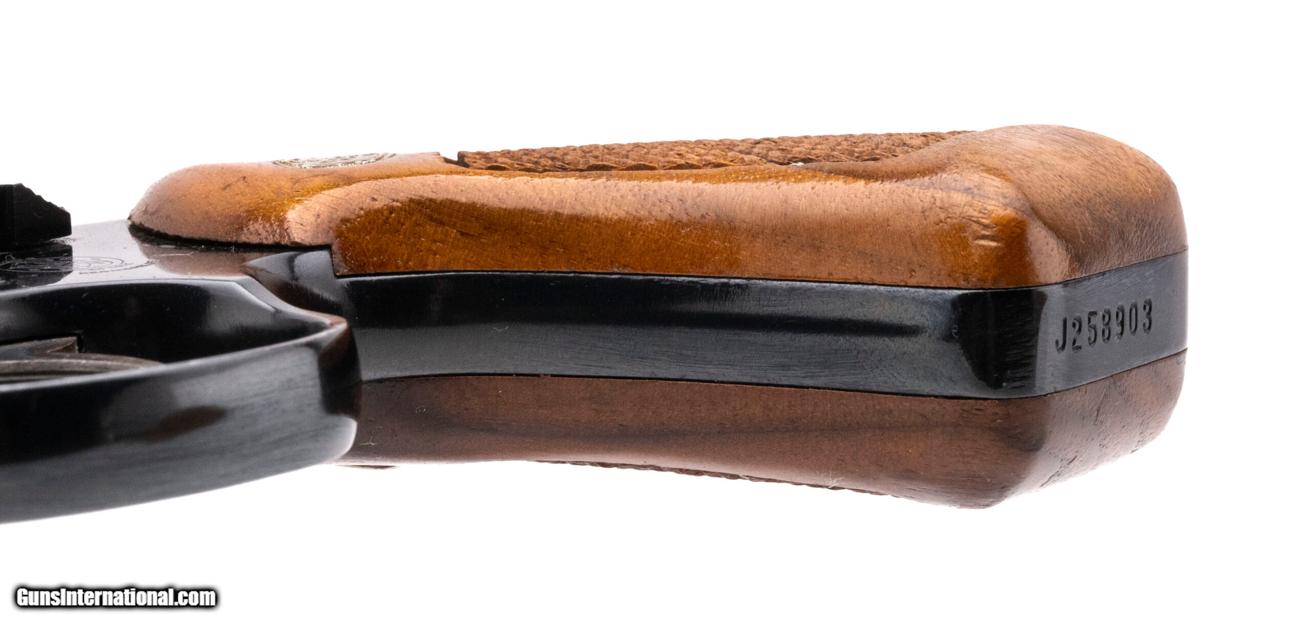 Description: "SN: J258903. 1970's vintage .38 Special with a 2"" barrel. J-frame snubnose revolver with square butt grip frame. The metal shows carry wear and has about 90% original blue finish. The wooden grips are excellent. Overall very good condition. SOLD |