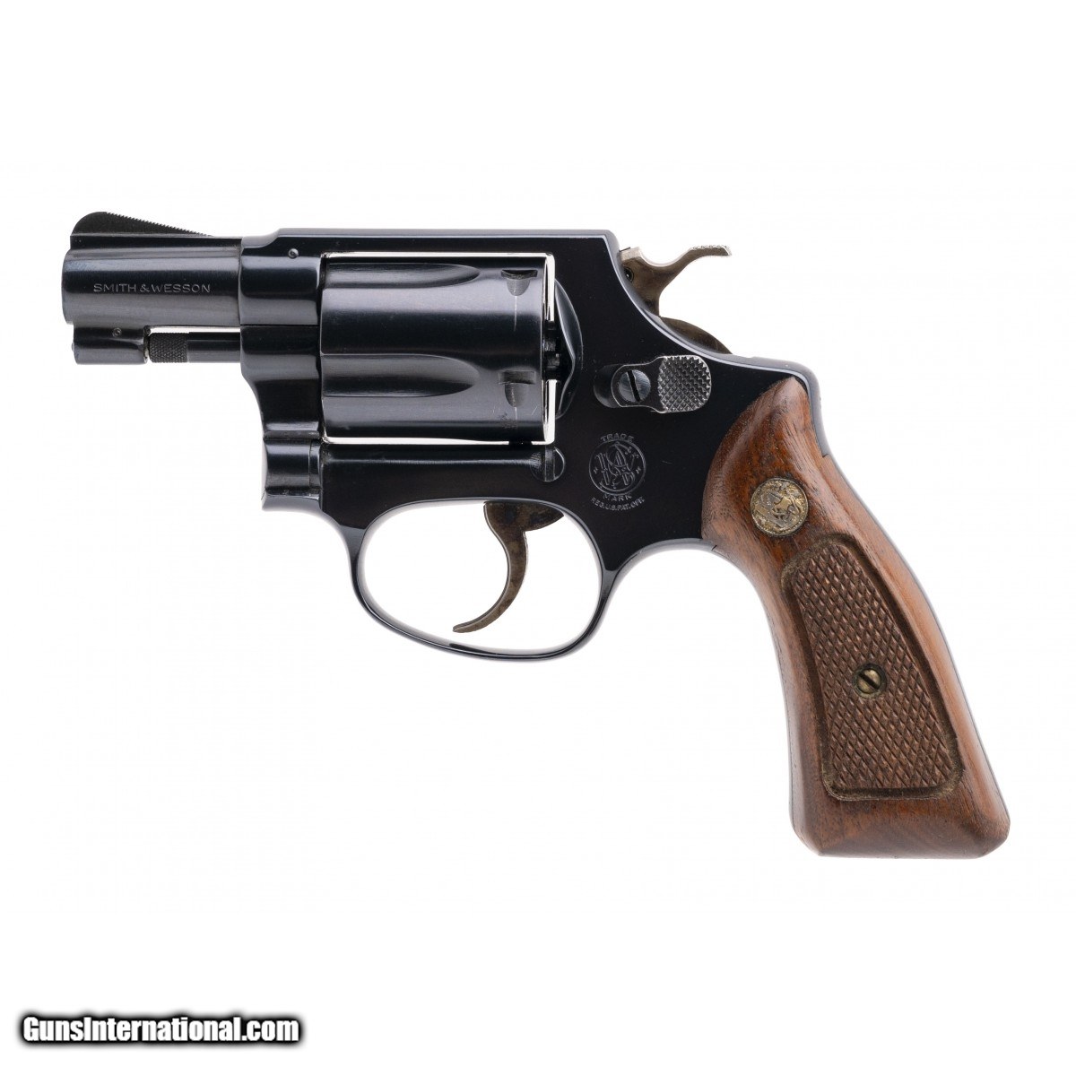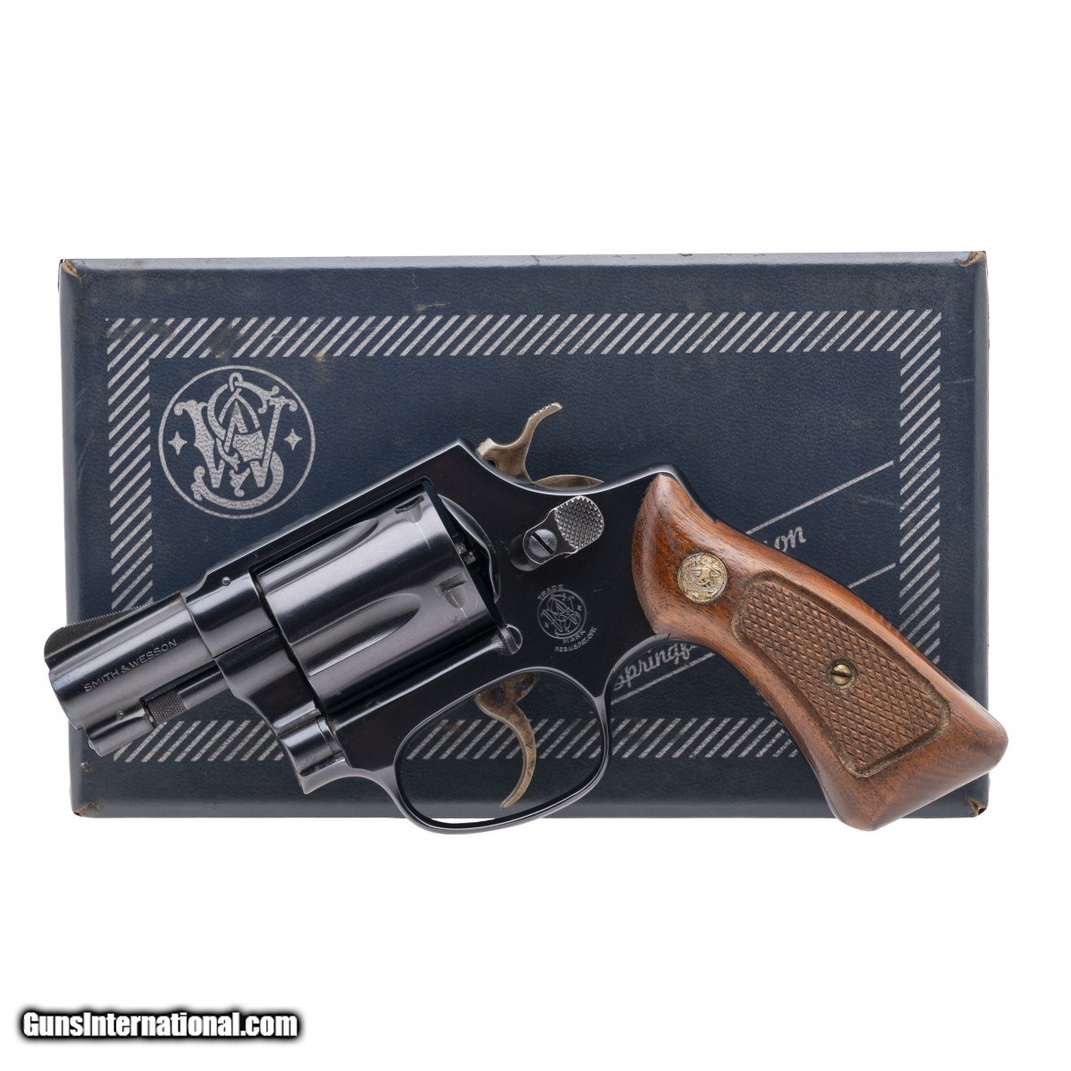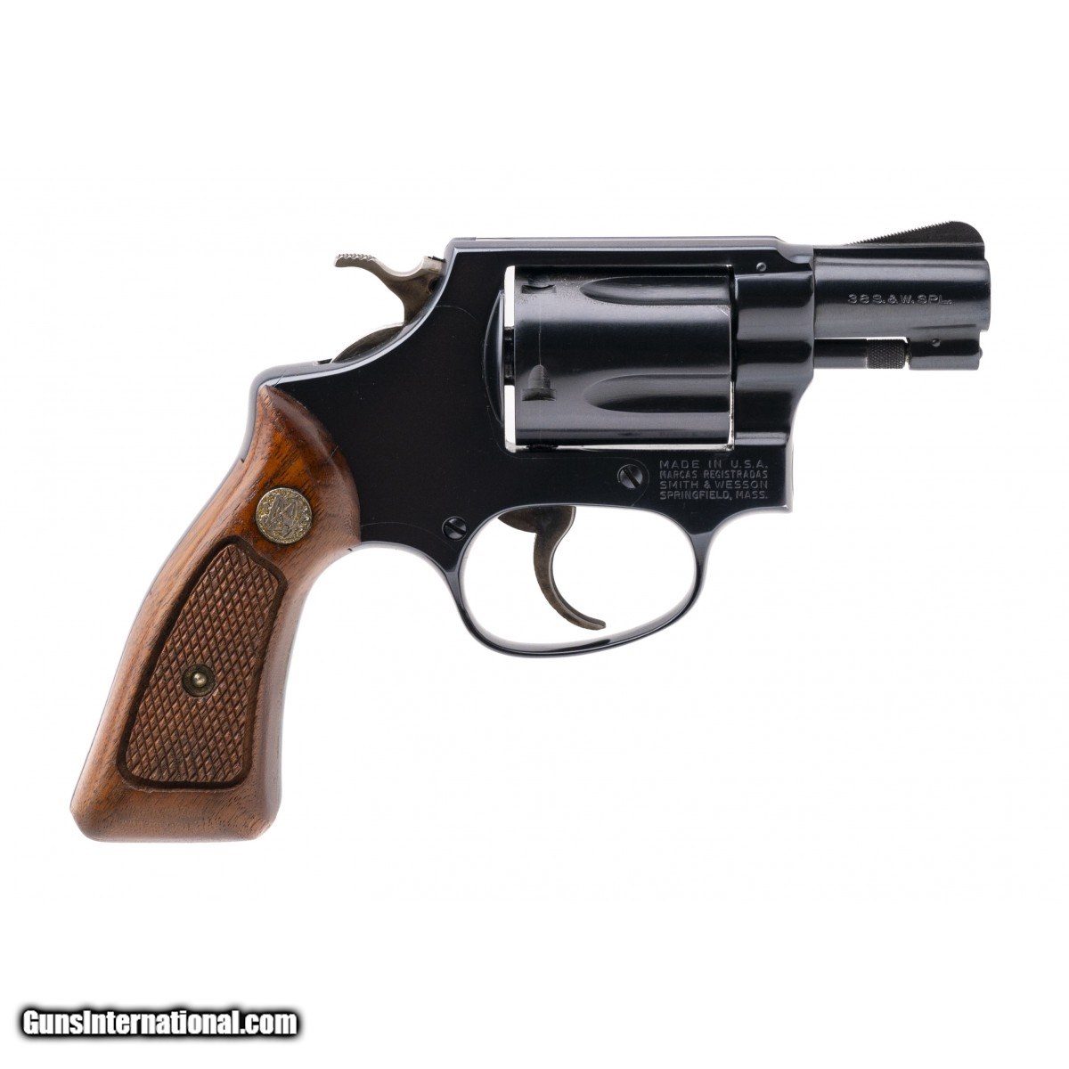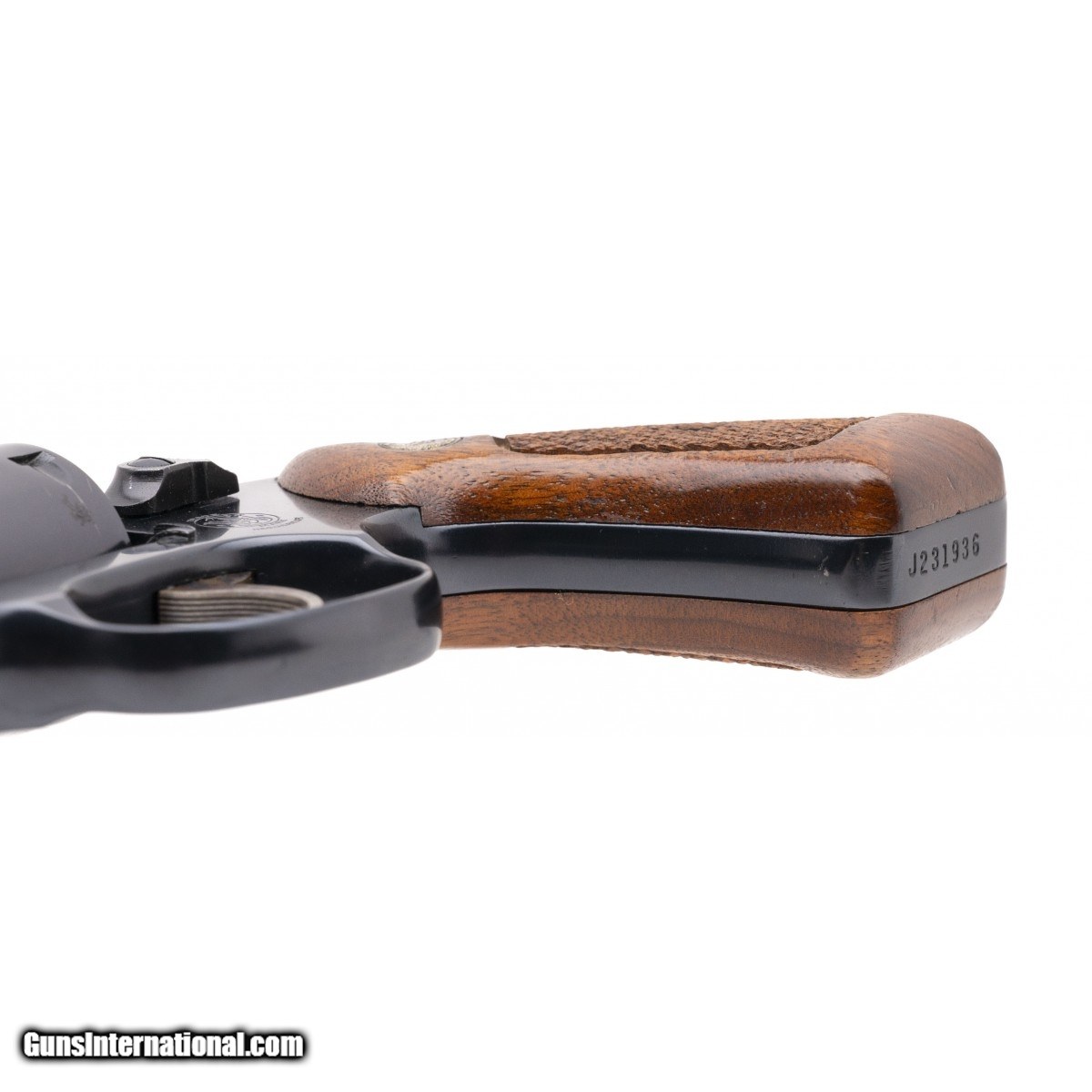 SN: J231936. Made circa 1960s. .38 Special with a 2" barrel. Bore is in very good condition. Smith & Wesson double action J-frame revolver. Factory blue finish is in very good condition. Checkered grips are in very good condition. Overall condition is very good. Comes with box. (Consignment)