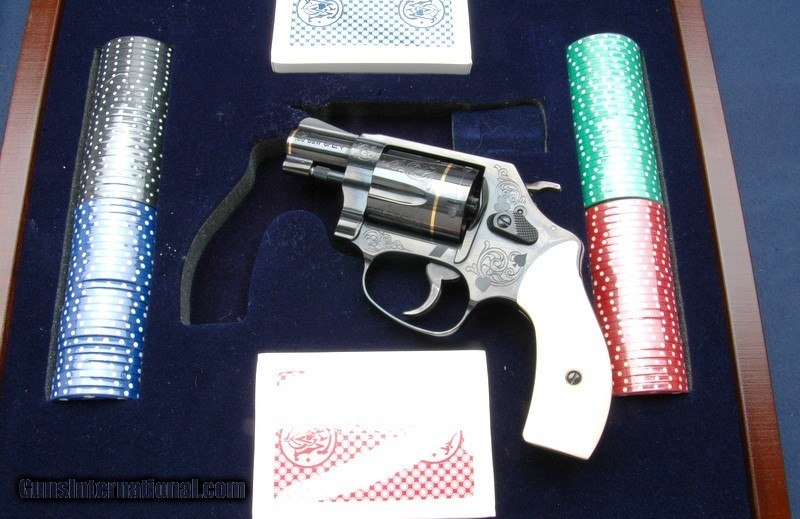 Description: Factory commemorative set. Unopened, unfired, unturned. Gold inlay. Glass topped display case. Poker chips, cards, etc. All unopened. Comes with the factory cardboard box with all of the styrofoam for the display case and the hard factory case for the 36-10 with all inserts, manual, etc. $55 shipping to the lower 48, 3% surcharge for using a CC. If you choose to pay with a personal check, we will hold the item for up to 10 days to make sure that it clears. Please expedite such pymts as we will hold an item on your word for 5 days. SOLD Handgun Caliber: .38 Special |