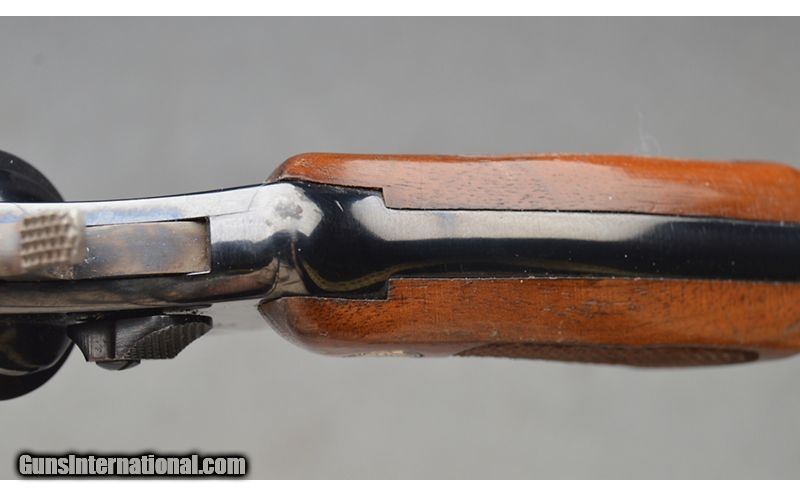 Description: Smith & Wesson 36 chambered in .38 S&W SP is in very good condition. It features a 1 /34" barrel and wooden grips with a checkered pattern and Smith & Wesson medallions inlaid on both sides of the grip. .38 S&W Special SOLD Metal Condition: Very good condition with handling marks Wood Condition: Very good condition with handling marks Bore Condition: Clean and shiny Barrels: 1 3/4 Butt Pad: Wooden with a checkered pattern Weight: 1lb 3oz Item Location: Fort Worth, TX |