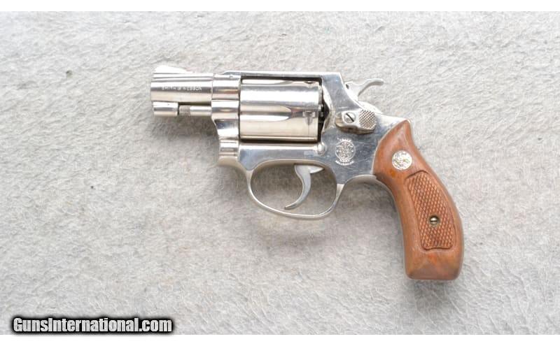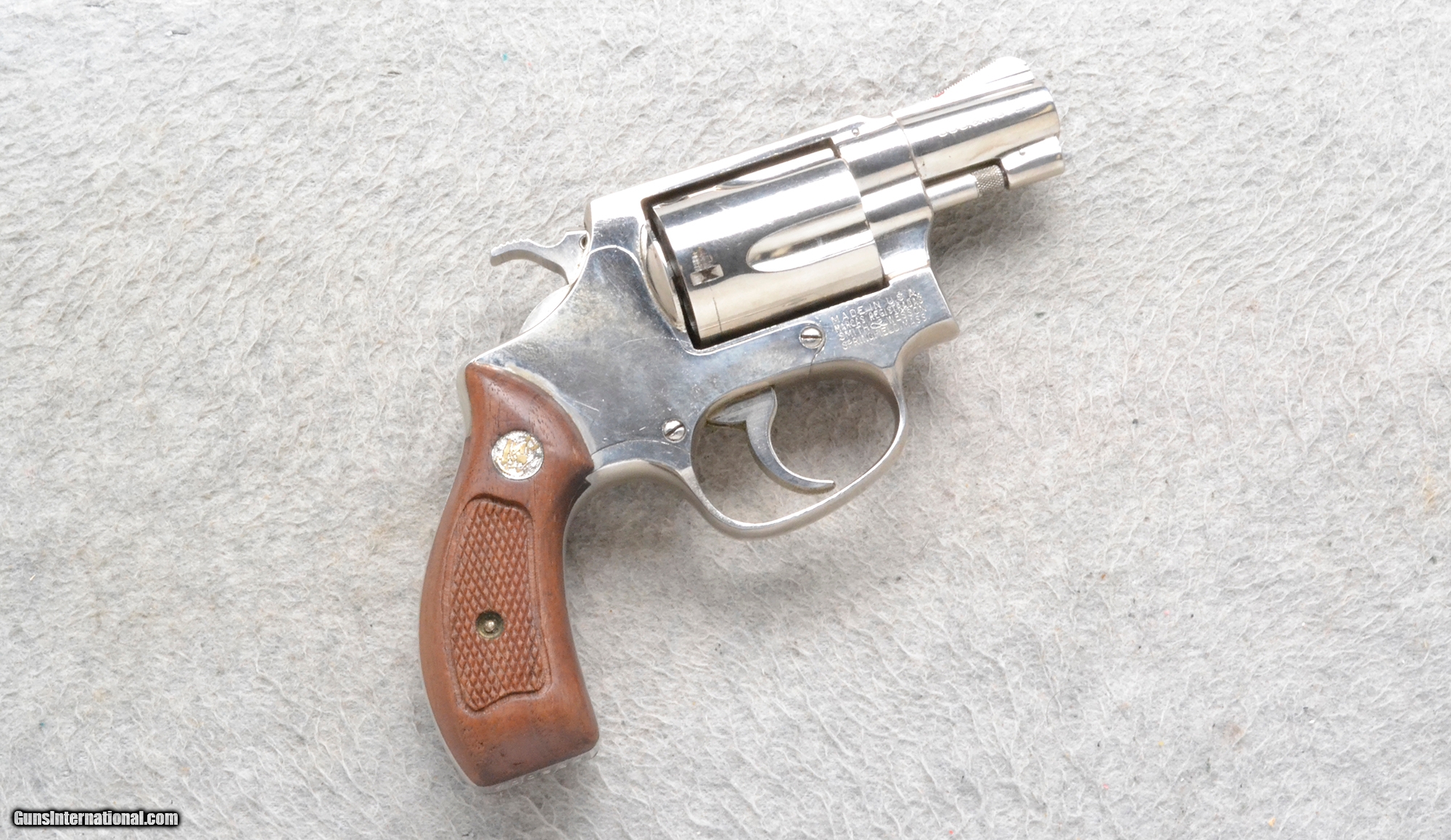 Description: This Smith & Wesson Model 36 is a 5 shot double action revolver in .38 Special Cal. It has a 1 7/8 inch barrel. A blade front sight and an integral notch rear sight. The grip is a checkered walnut with silver S&W medallions. S/N 658003. .38 S&W Special SOLD Chambers: 5 shot. Metal Condition: Fair. Has a lot of fine scratches and minor finish wear areas. Wood Condition: Good. Bore Condition: Good. Barrels: 1 7/8 inch. Triggers: DA/SA Weight: 22 oz. Sights: Blade front. Integral notch rear. Item Location: Richfield, WI |