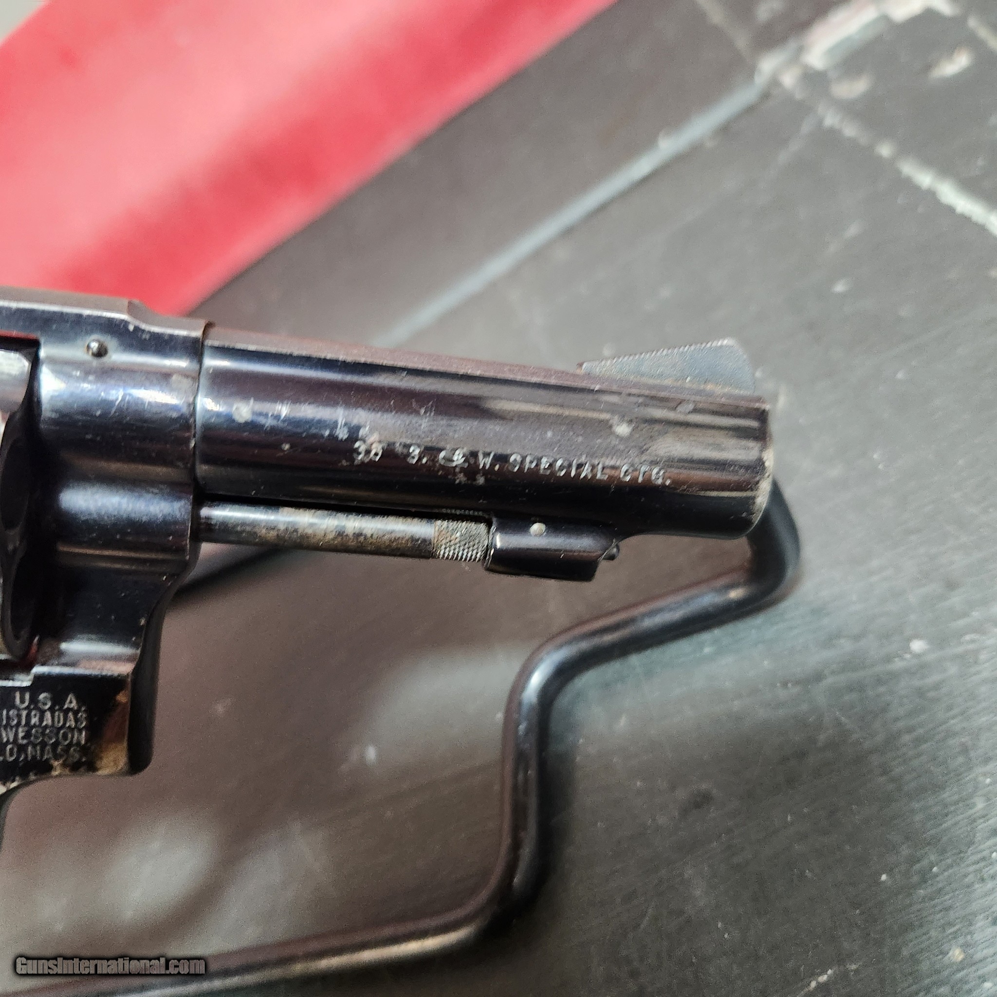 Description: Guns Listing ID: 1068330 Caliber: .38 Spl +P Action: revolving chamber Trigger: double-action (DA/SA) Safety: Cylinder: 5-round Frame: blued steel Grip: Altamont wood Sights: blade front, grooved rear Notes: Classics Series SOLD Manufacturer: SMITH & WESSON Model: 36 Caliber Info: .38 SPL Condition: Used - Non-Certified Barrels: 3 BARREL Finish: BLUED |