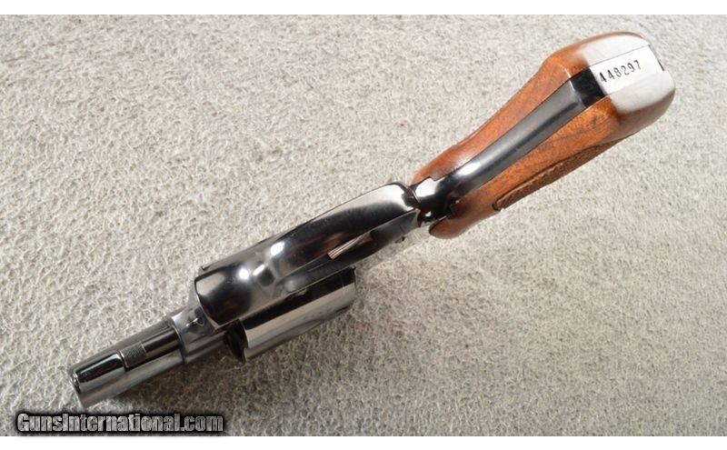 Description: Smith & Wesson Model 36 Chiefs Special snub nose .38 Special, with no letters 2" barrel double action 5-shot revolver. Features polished blued finish, fixed sights, square butt, and comes in original S&W factory paper over cardboard box with matching specifications of this gun on printed label. Box contains cleaning rod, bore brush, and original warranty card. .38 S&W SOLD Chambers: 5 shot revolver. Wood Condition: Excellent. Bore Condition: Like new. Barrels: 2" barrel. Triggers: Single. Weight: 1 1/4 lbs Sights: Fixed serrated front ramp/notched rear. Item Location: Owatonna, MN |
