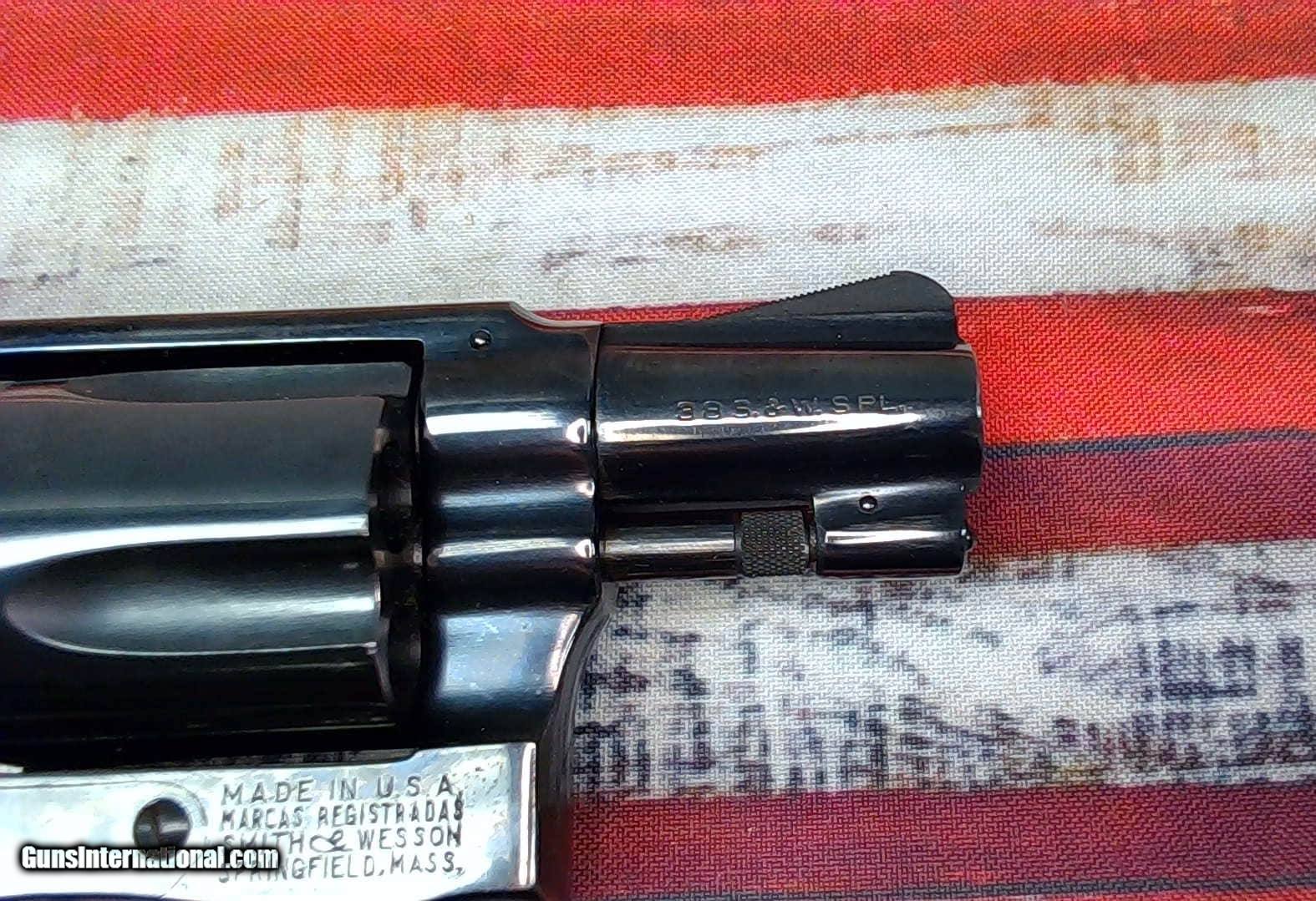 Description: Guns Listing ID: 905348 This is a great example of a Smith & Wesson Model 36 revolver, manufactured in the late 1960‚‚s and chambered in .38 Special. 2\" barrel. The gun is in very good condition with little signs of wear or use - a slight scratch and a hint of pitting behind the cylinder. On the opposite side, a spot of rust (possibly chipped paint) directly below the cylinder. Excellent case-hardening on the hammer and trigger. Comes with hand-checkered wood grips with a matching number. Clean bore. The cylinder is tight, and the action is smooth. Comes with original box, cleaning kit and instruction manual SOLD Manufacturer: SMITH & WESSON Model: 36 CHIEF‚‚S SPECIA Caliber Info: .38 SPL Condition: Used - Non-Certified Barrels: 2 BARREL Finish: BLUE |