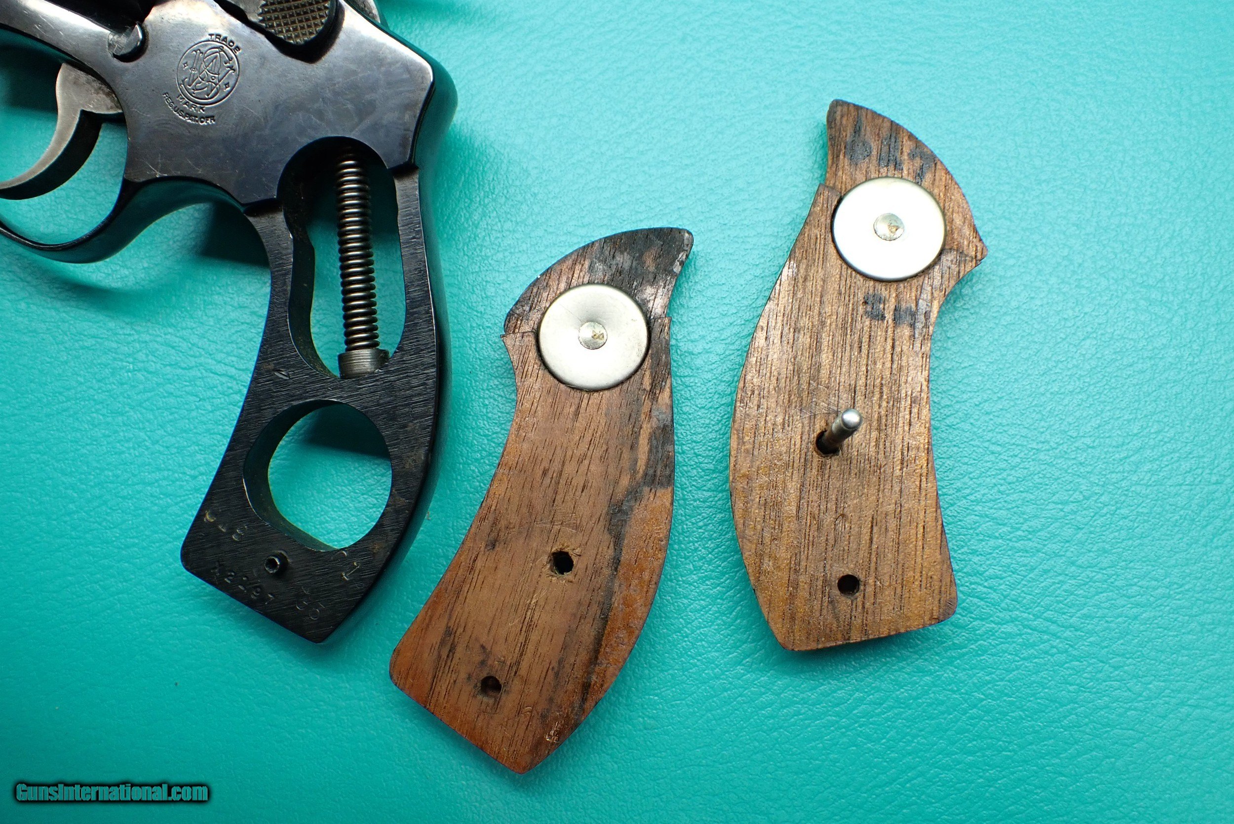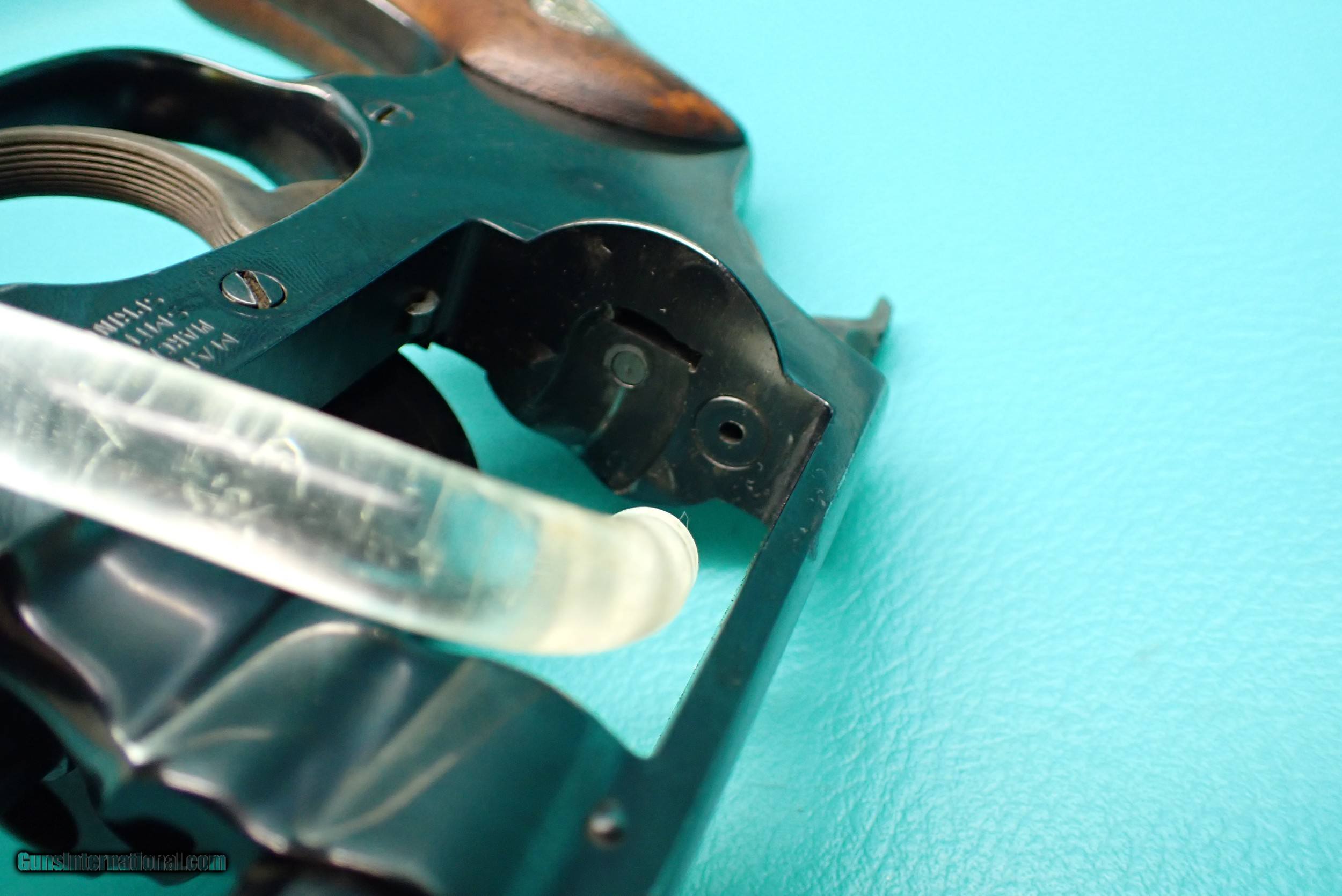 Description: Smith & Wesson Model 36 .38 Special revolver, dated to 1976-77. This compact 5 shot revolver features a handy blued J-Frame round butt frame, with non-numbered but correct stocks, pinned barrel, color case hardened trigger and hammer, and both double and single action firing. The revolver is in excellent working order, the timing and lockup is solid, and the bore/chamber surfaces are brilliant. Some areas of minor finish wear can be seen, particularly in high contact areas. A perfect compact revolver for personal protection! Please refer to the photos prior for overall condition. No handgun sale in MA. Shipping $25.00 / USPS SOLD Handgun Caliber: .38 Special Manufacturer: S&W Model: 36 Serial Number: J467627 |