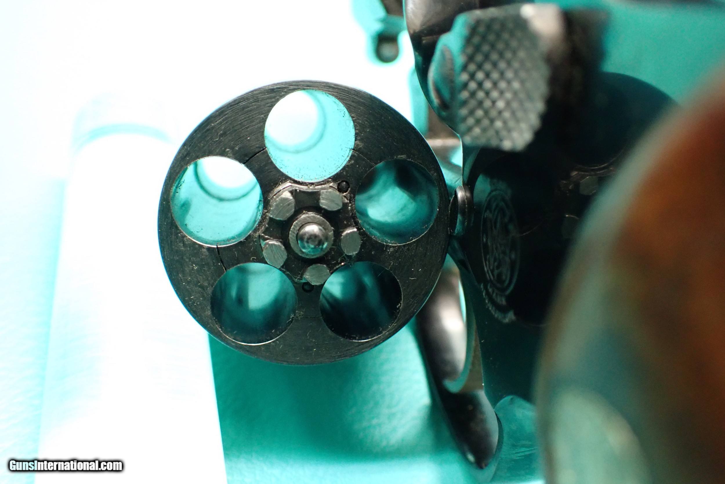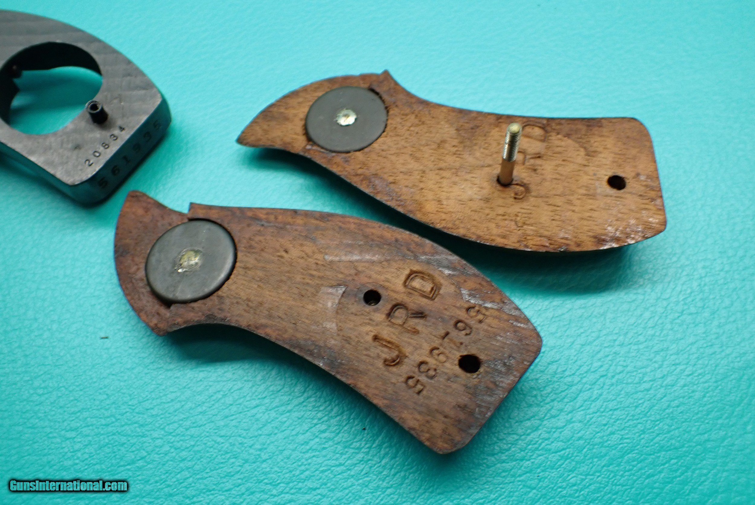 Description: ***SOLD*** Smith & Wesson Model 36 .38 Special revolver, dated between 1962 and 1969, most likely after 1965. This compact 5 shot revolver features a handy blued J-Frame round butt frame, with matching walnut stocks, color case hardened trigger and hammer, and both double and single action firing. The revolver is in excellent working order, the timing and lockup feels great, and the bore/chamber surfaces are brilliant. A spot of finish loss can be seen on the cylinder. The gun is in great condition, considering its age. A perfect revolver for compact personal protection! Please refer to the photos prior for overall condition. No handgun sale in MA. C&R OK. Shipping $25.00 / USPS SOLD Handgun Caliber: .38 Special Manufacturer: S&W Model: 36 Serial Number: 561935 |