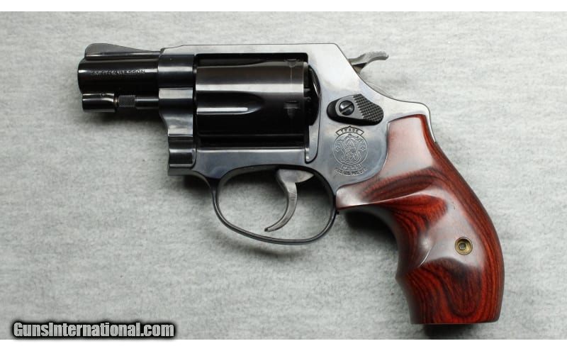 Description: Excellent condition, light wear, and handling marks, comes with fctory case. S&W "snub nose" revolver, 1 7/8" barrel, polished blue finish, fixed sights, 5 shot fluted cylinder, double & single action trigger, checkered hammer & cylinder latch and smooth laminated wood grips. An excellent choice for concealed carry. .38 Special SOLD Chambers: Revolver Metal Condition: Excellent Bore Condition: Bright Barrels: 1 7/8 Triggers: Double and single action Butt Pad: Wood grips Sights: "Fixed rear channel, blade front sights Item Location: La Vista, NE |