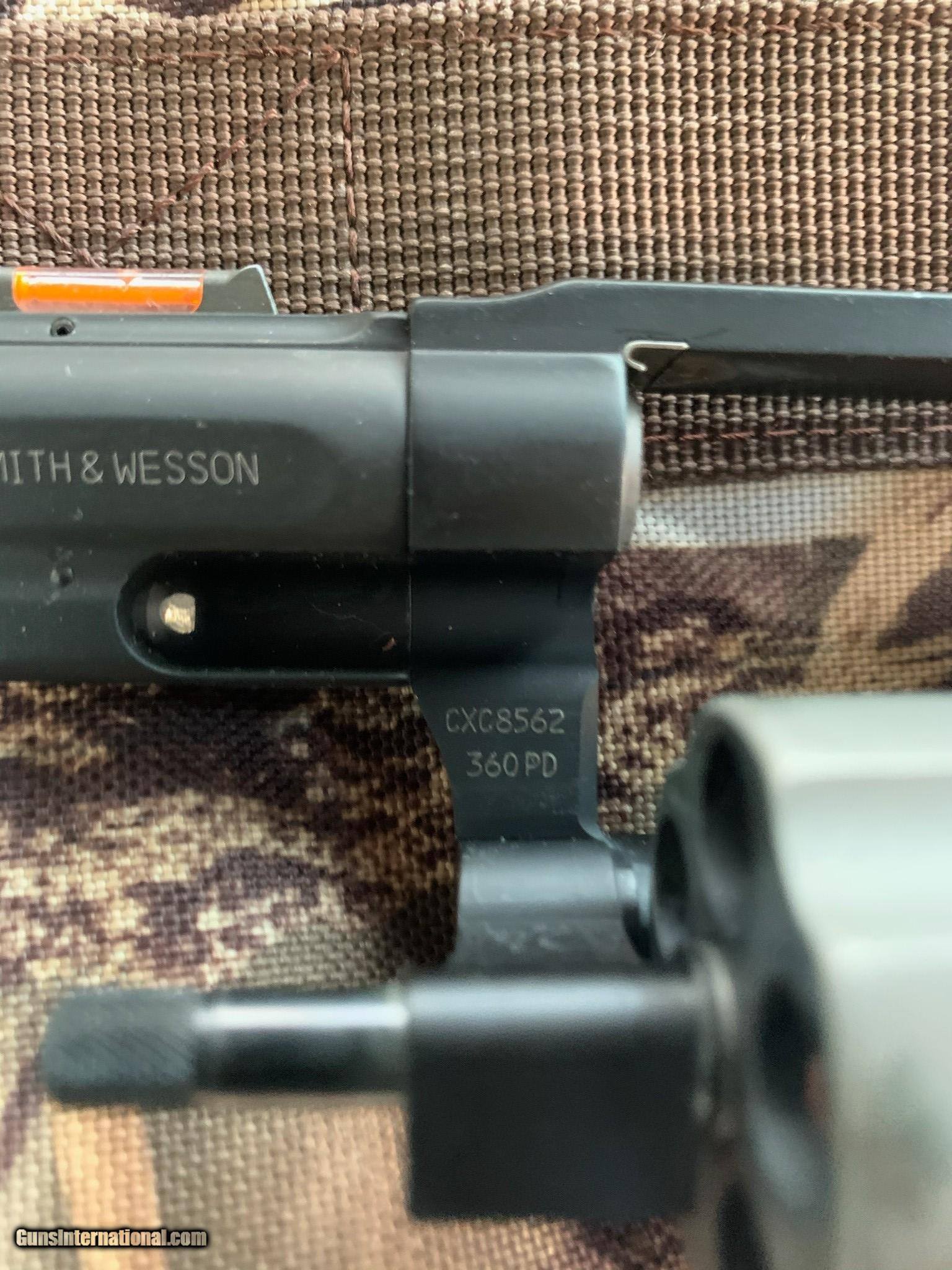 Description: Smith & Wesson Air Lite 360 PD .357 5-shot revolver LIKE NEW!! Personal Defense Revolver, Matte Black Scandium Alloy Frame!! This is a used Smith & Wesson Small J Frame .357 mag (.38 spl) 5-shot revolver that is Like NEW (no box). 1.88" bbl. Single Action/Double Action, HiViz Orange Dot Front Sight, Fixed Notch Rear Sight, Matte Black Scandium Alloy frame (Air Lite) with Black Rubber Grips. Please see pictures of actual gun you will receive. Nice tight cylinder lock up, with slight cylinder drag line from very light use!