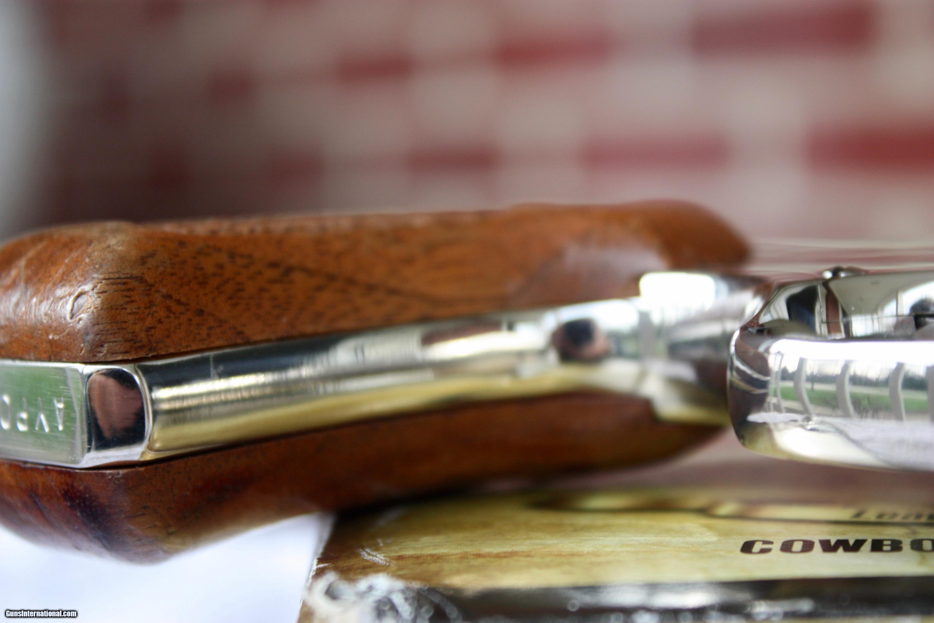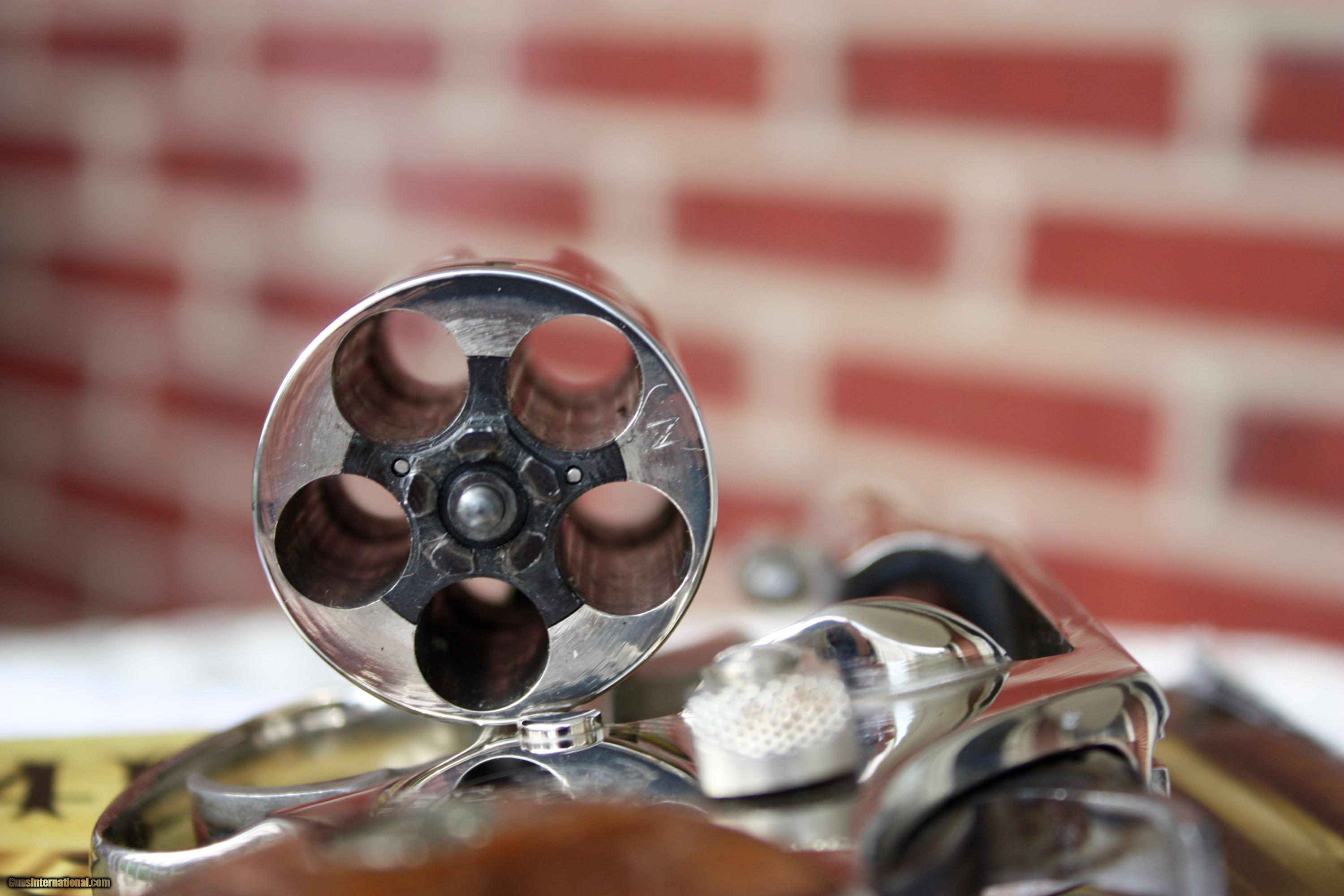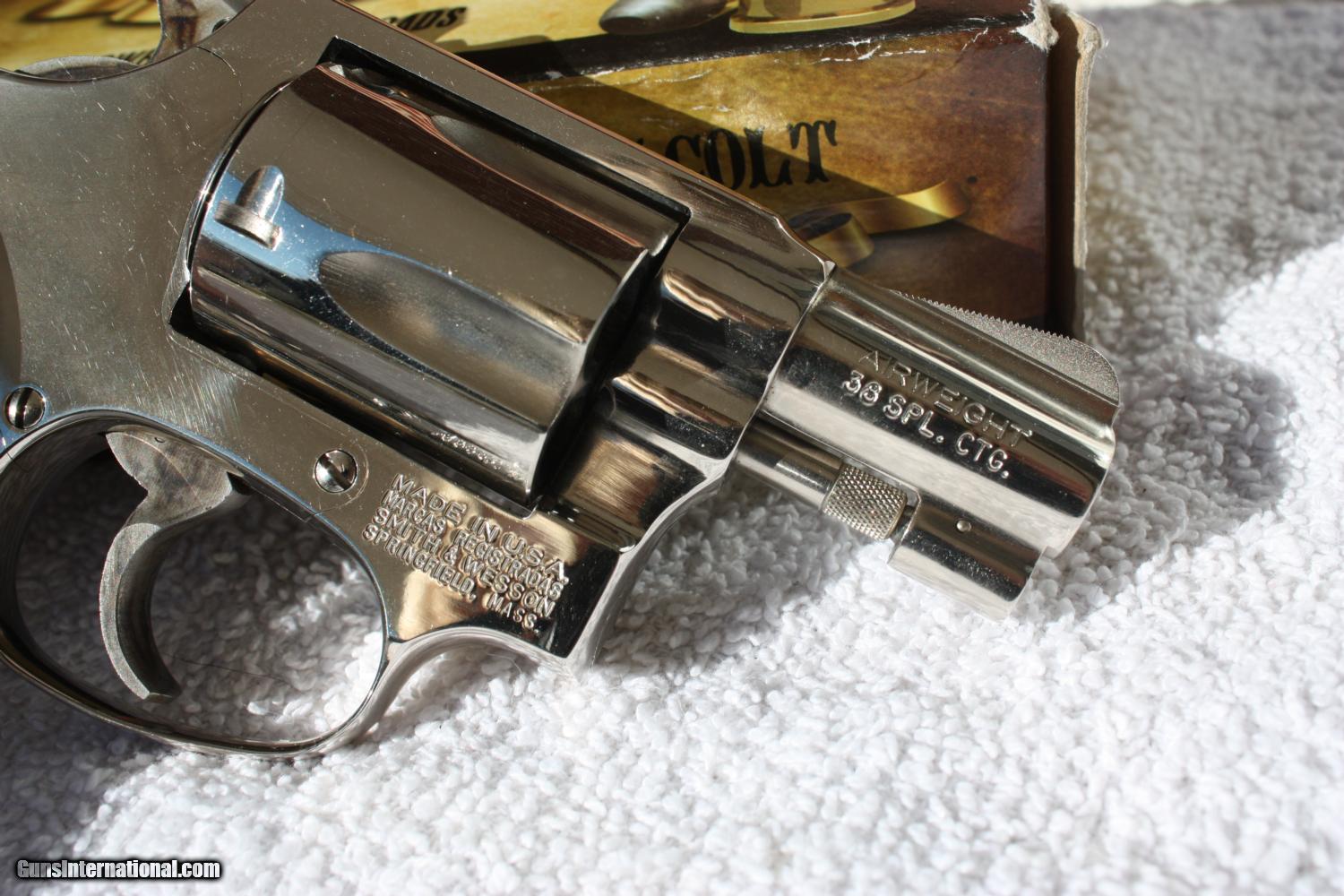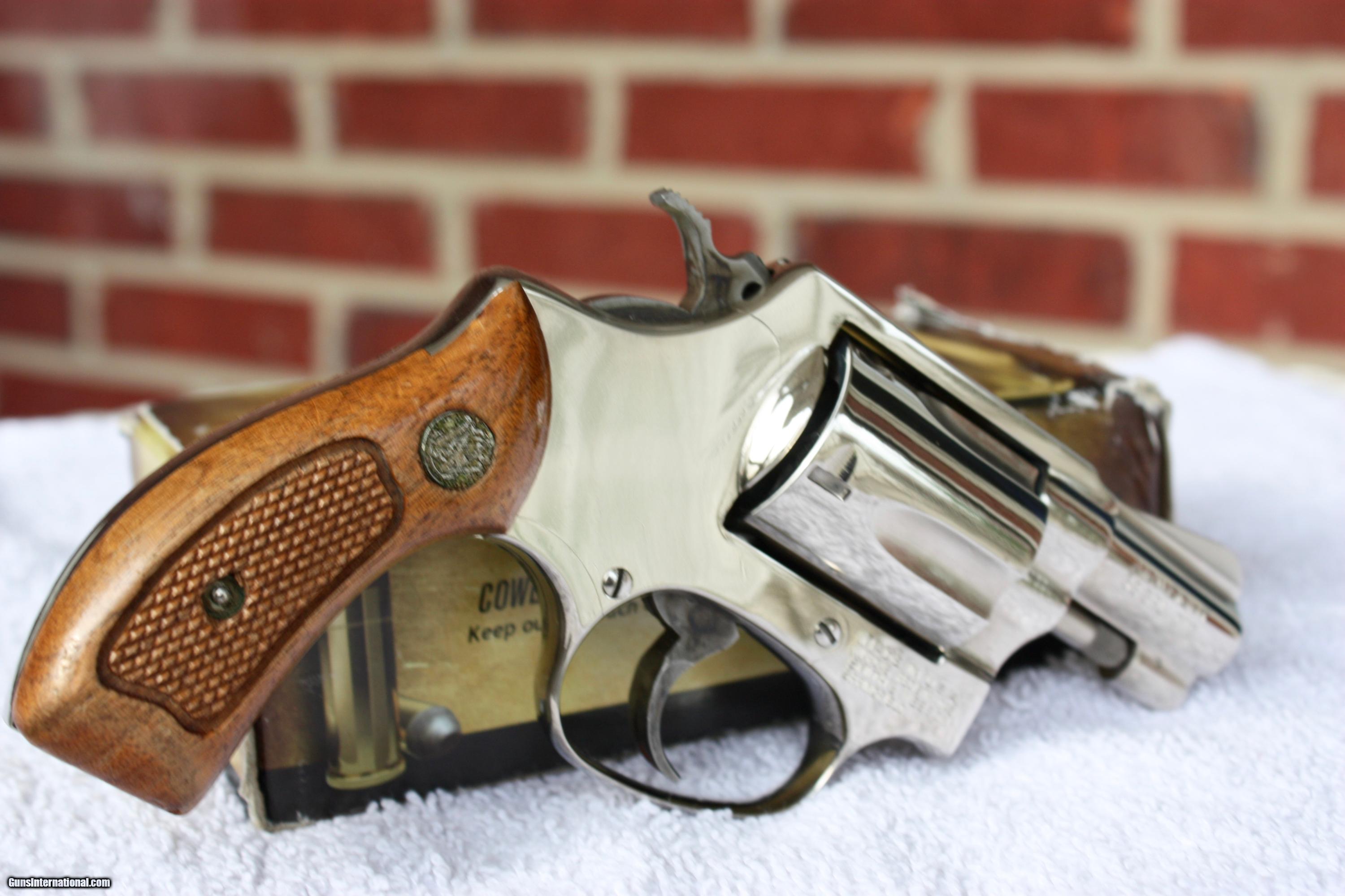 Description: Here is a beautiful S&W model 37 Airweight Original nickel is in excellent condition. No chips, scratches or blemishes. Wood grips in very nice condition with S&W medallions. no box or papers 35.00 ship Fee SOLD |