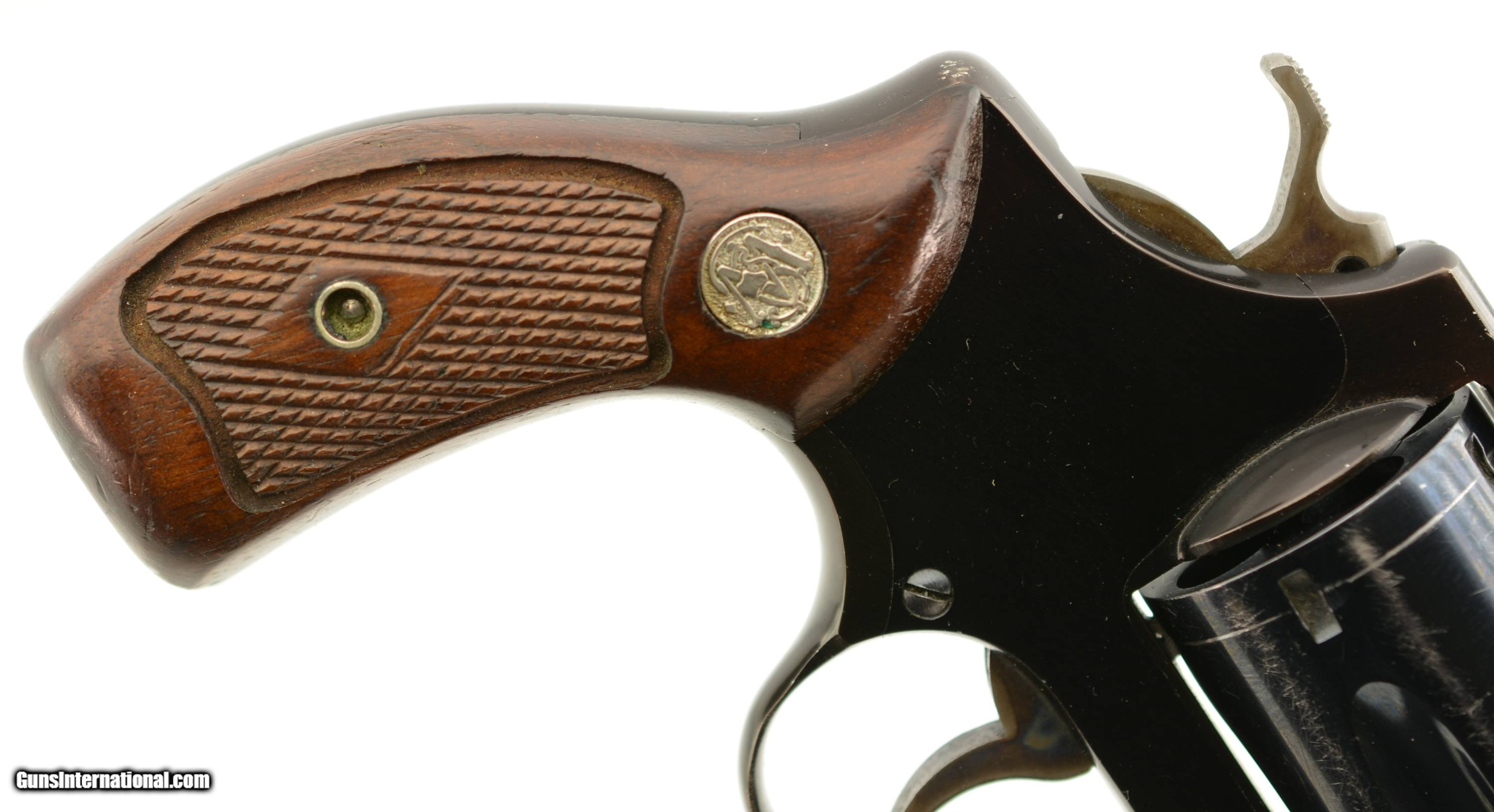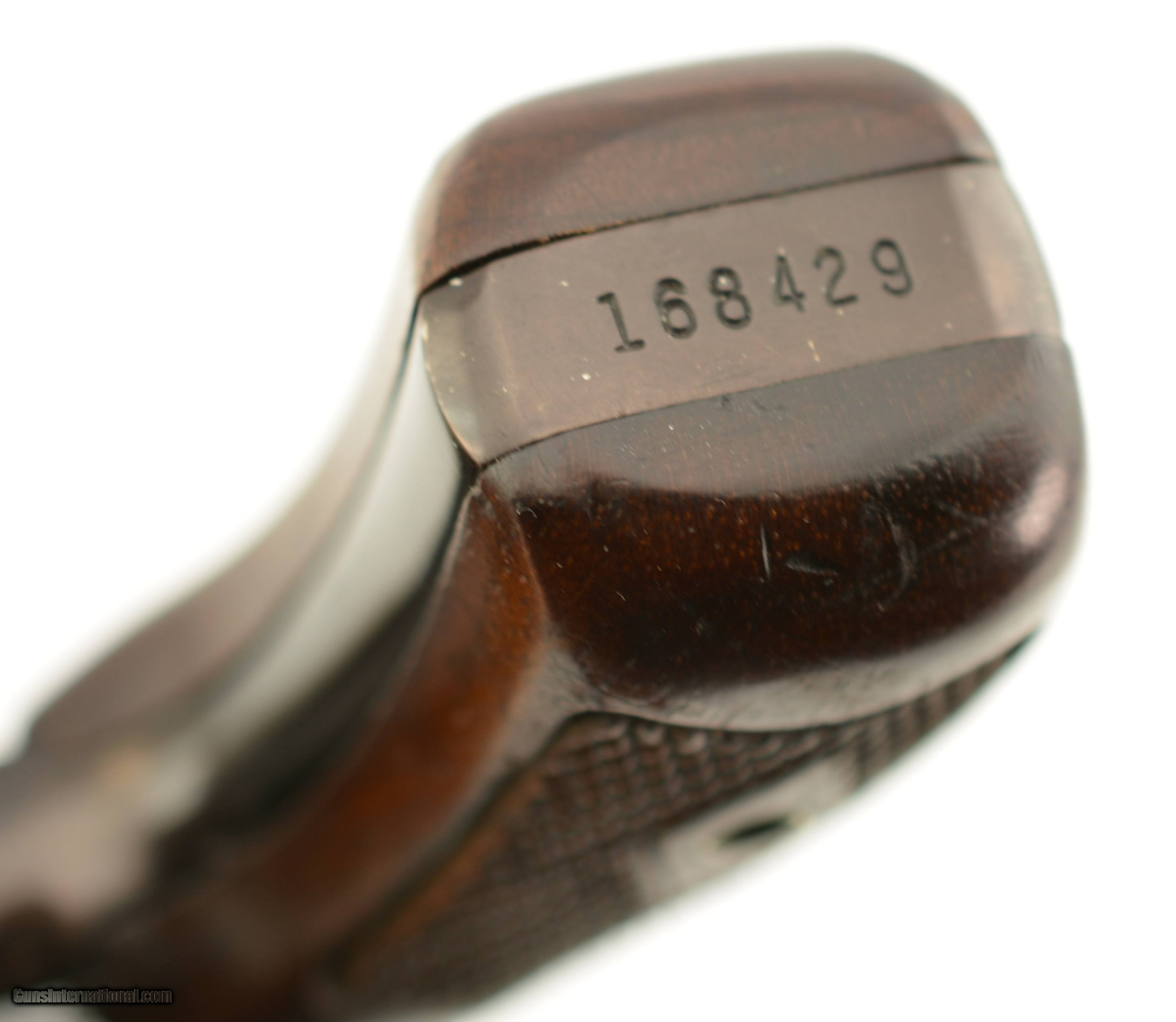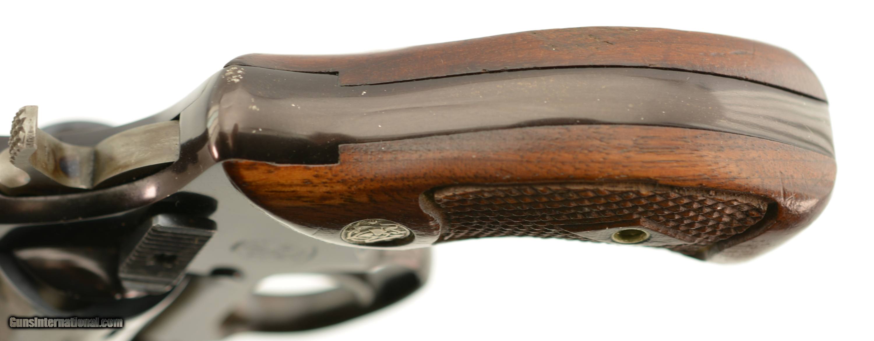 Description: Serial #168429, .38 Special, 1 7/8" barrel with an excellent, bright bore. This is a pre-1966 revolver, with the early flat latch, that has retained 85-90% of the original blue on the barrel and cylinder. There are some hints of silvering on the barrel, and faint lines of gray fading along the axis of the cylinder, as well as a moderate turn-ring at the rear. The alloy frame retains about 92-95% of the original black anodized finish, which has begun to turn a dark plum color over time. Some specks of underlying gray metal are present along the edges of the topstrap, at the frame knuckle, and along the edges of the trigger guard bow. The checkered, diamond-center grips are original and numbered to the gun on the interior, with only some minor handling marks and mild flattening of the points on either panel. The lock-up remains tight and the action functions flawlessly. This is a fine example of an early, flat-latch Chiefs Special Airweight, and would make a great addition to any collection. FFL or C&R SOLD Curio/Relic: Yes Manufacturer: S&W Model: 37 Serial Number: 168429 Caliber Info: .38 Spl Gauge Info: .38 Spl |