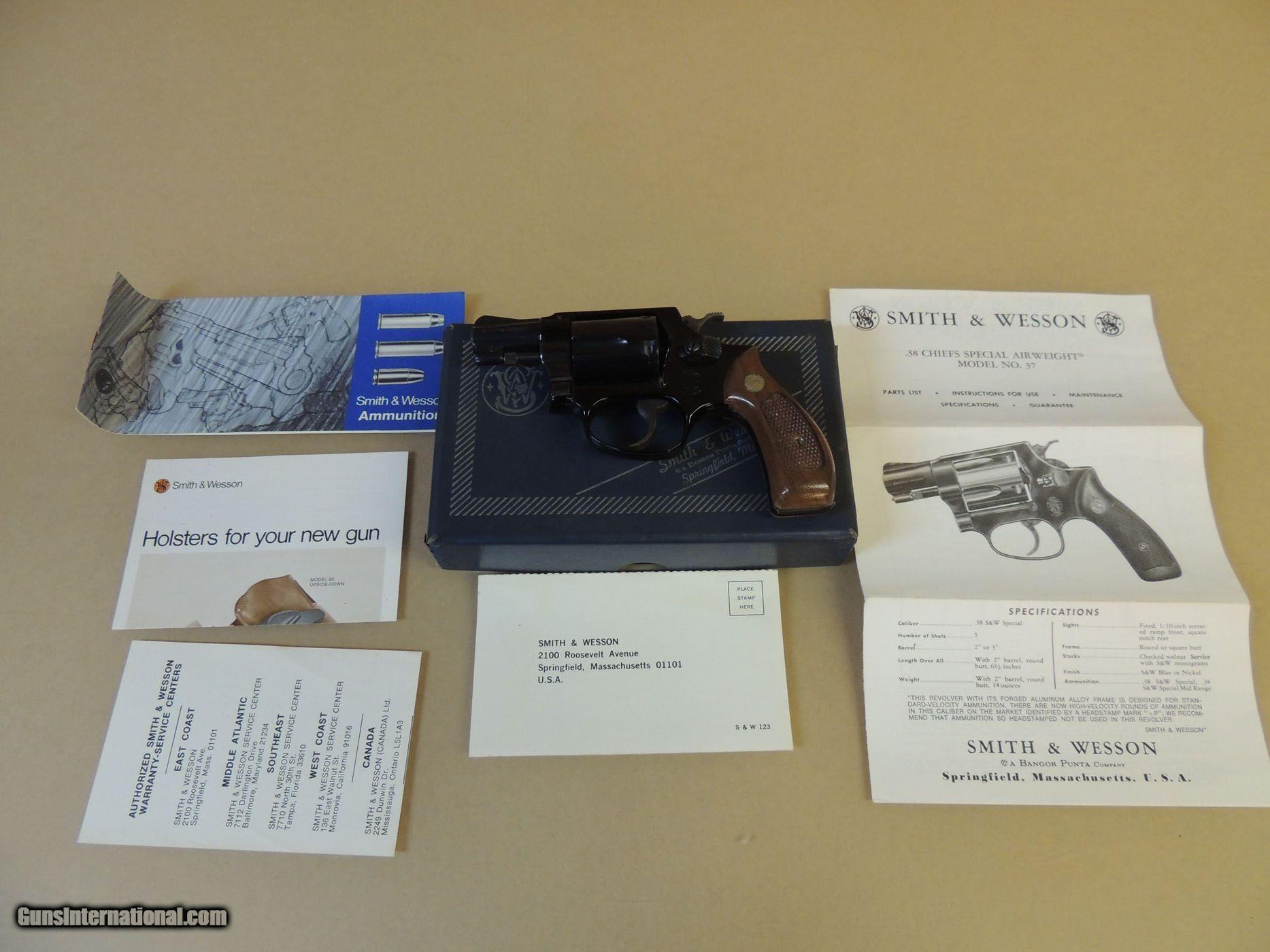 Description: SMITH & WESSON MODEL 37 "CHIEFS SPECIAL AIRWEIGHT" .38 SPECIAL REVOLVER IN BOX, 2" BARREL WITH MINT BORE, TIMING AND LOCK UP CORRECT, 98% CONDITION, IN BOX WITH PAPERS $599 ******* (PLEASE REFERENCE OUR INVENTORY NUMBER) (PAYMENT OPTIONS) (Postal Money Order) (Cashiers Checks) (Personal Checks (Item held until Check Cleared) ***(Layaway 120 days-(No Interest)-(Pay any way, any time you like over the term) -(Deposit required)*** (Credit Cards Visa or Master Card 3% fee added to total sale) (GA residents 7% sales Tax Applies) (FAX 888-597-1394) (BEST PHONE/TEXT 229-424-8450) (Shipping $35.00) SOLD |