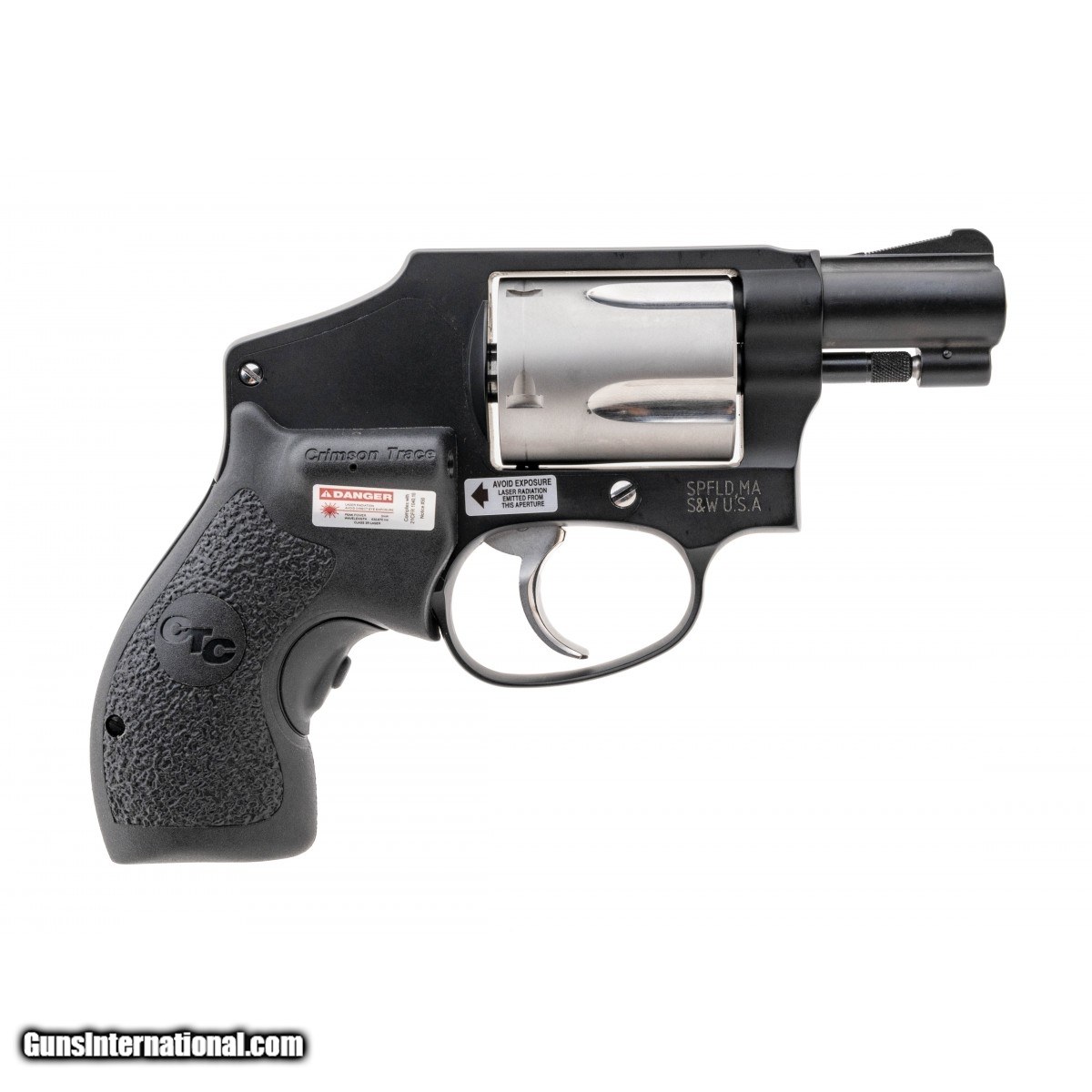 1.875"" alloy framed two-tone pocket revolver with Crimson Trace laser grips. Double action only performance model J-Frame. NEW. UPC:022188878585.