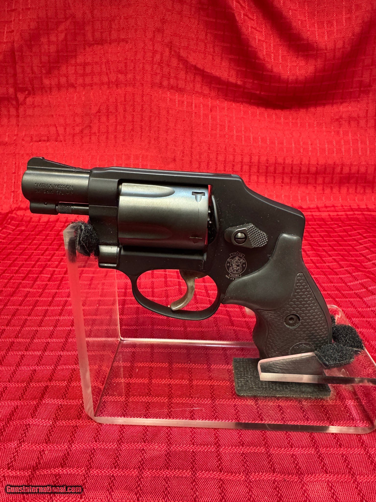 Manufacturer: SMITH & WESSON Model: 442-1 Caliber: .38 SPL +P Magazines: N/A Sights: FRONT - RAMP, REAR - U CHANNEL Weight: 14.6 OZ Overall Length: 7\" Barrel Length: 2\" SERIAL NUMBER: DMK1595 SKU NUMBER: DJ1033546