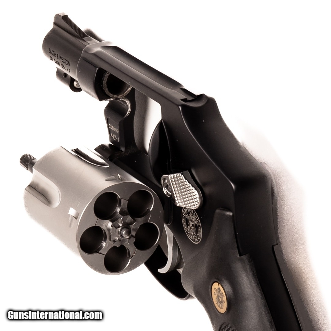 Description: Guns Listing ID: 828982 This 5-shot revolver is a Smith & Wesson Model 442-1 chambered in 38 Special with a snub-nosed barrel. It is a compact yet deadly package that is ideal for personal protection and home defense. This Performance Center Model 442-1 is in excellent condition! Purchase includes the original case, manual, an extra wood grip, and a pocket hook grip. Get the best bang for your buck when you get a Certified Used Firearm . When you see the Certified Used stamp on any of our firearms, you can be confident that you’re getting exactly what you want – a gun only in very good to excellent condition and held to the highest quality standard. All Certified Used Guns come with a ‘no questions asked’ return policy . PLUS, ALL CERTIFIED USED GUNS SHIP FREE! SOLD Manufacturer: SMITH & WESSON Model: 442-1 PERFORMANCE CENTER Caliber Info: .38 SPL Condition: Used - Certified Barrels: 1.8 BARREL Finish: TWO-TONE |