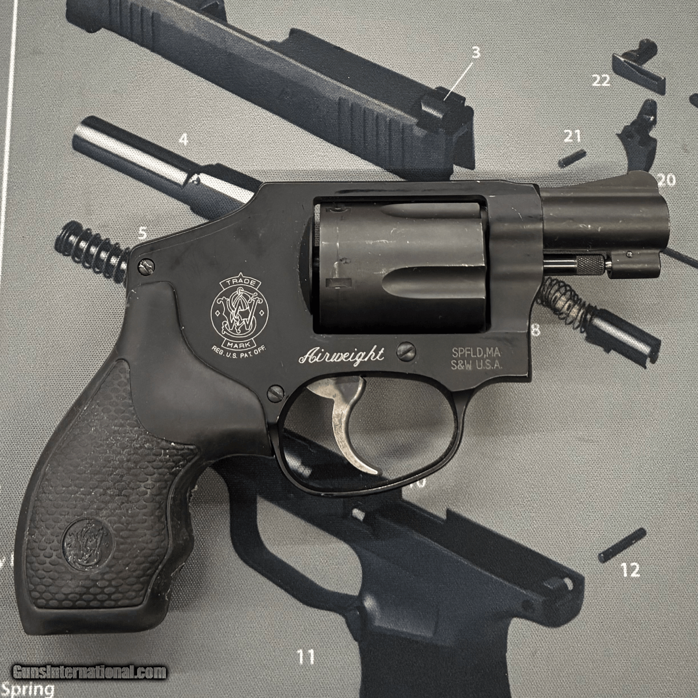 This used Smith & Wesson 442 Airweight comes with a holster and shows light handling wear but remains in good working condition. Chambered in .38 Special with a compact barrel, its aluminum alloy frame and stainless steel cylinder make it a reliable, easy-to-carry revolver ideal for concealed carry; the action is smooth and the bore and cylinder are clean.