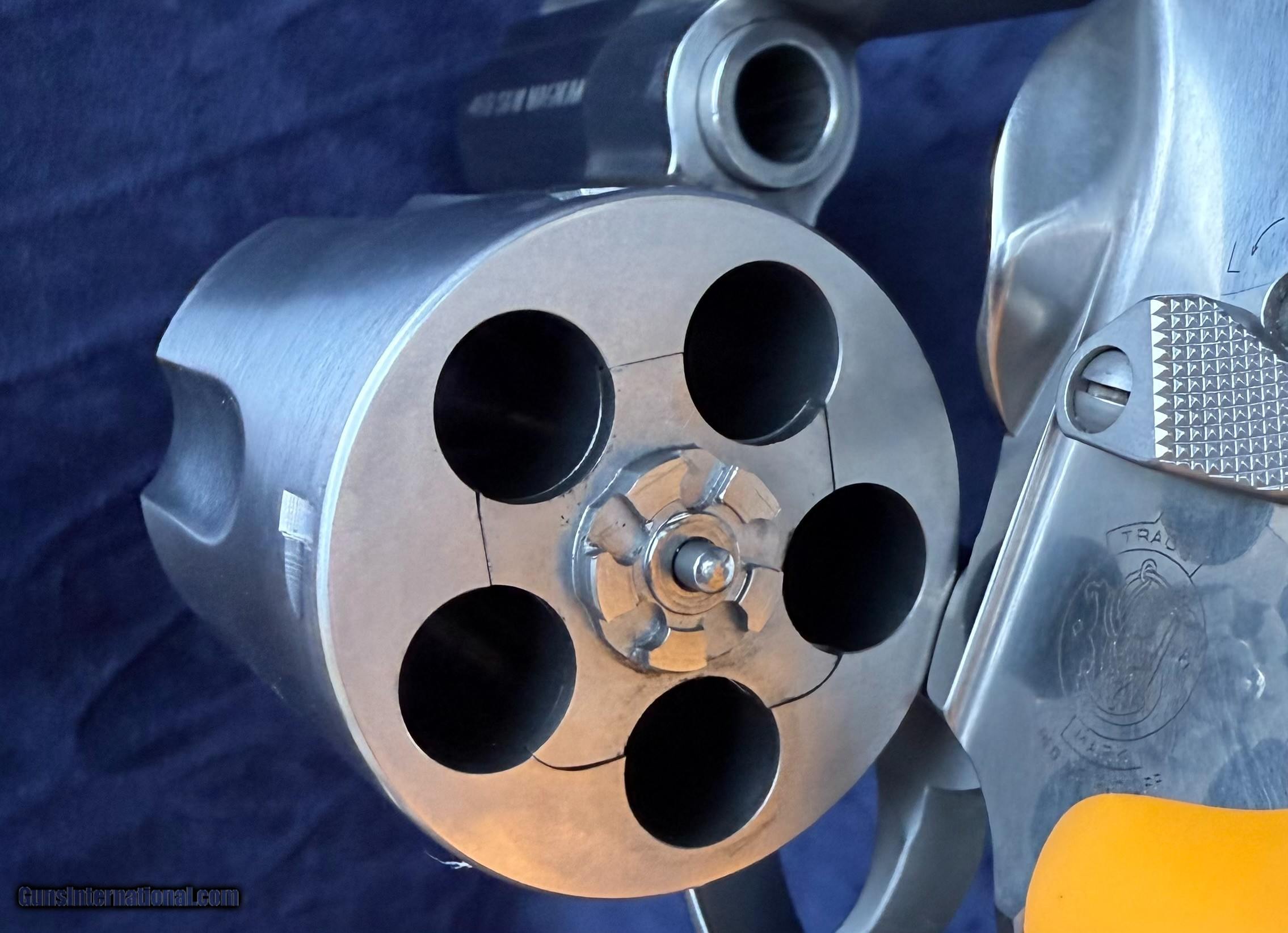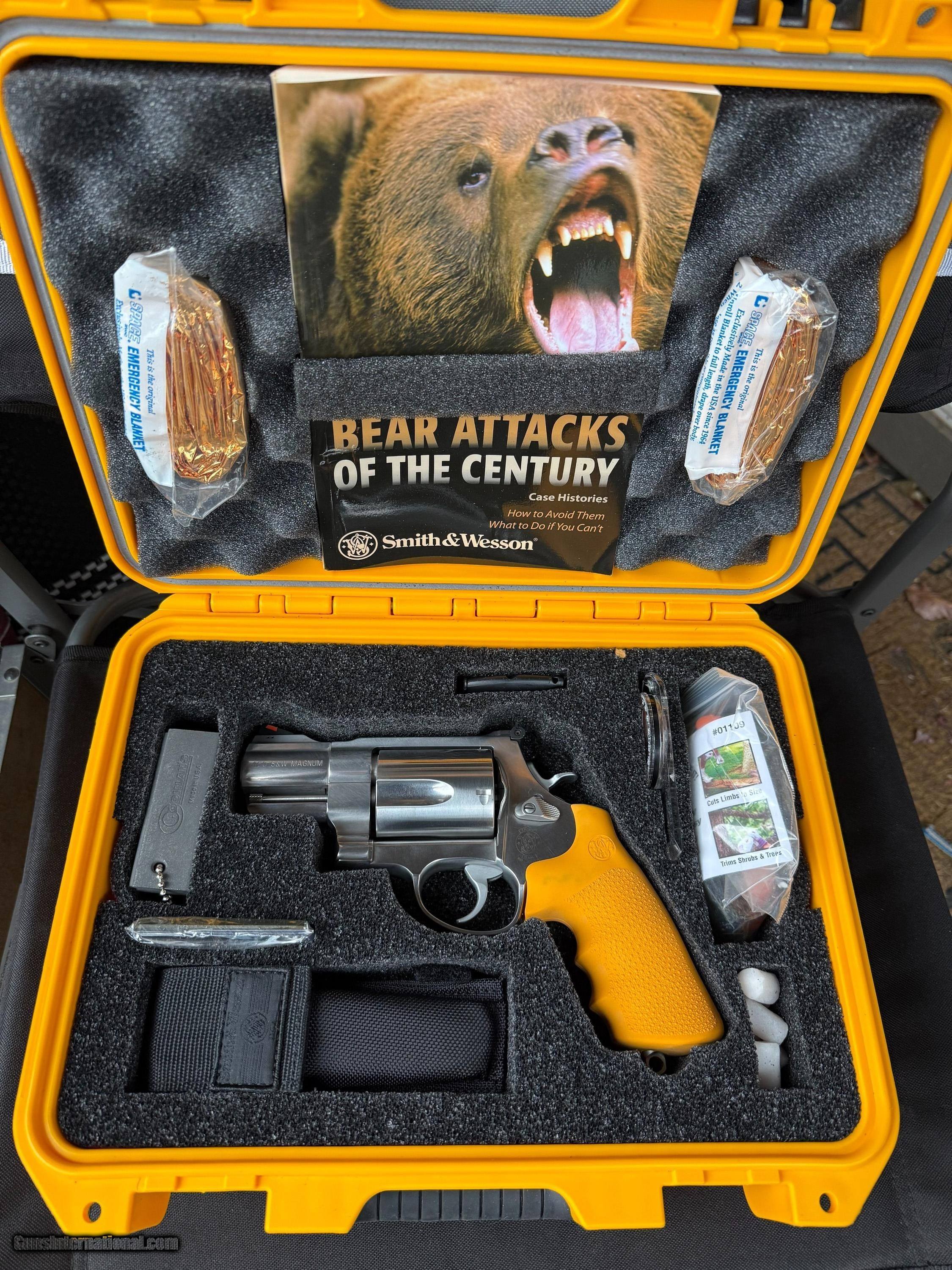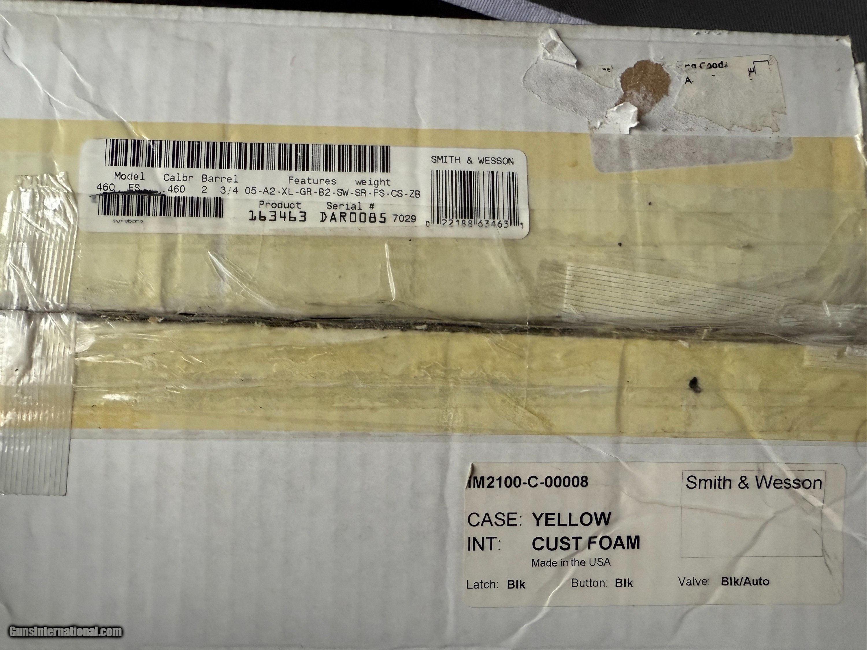 Description: This is an unbelievable condition 460ES S&W Emergency Bear Survival Tool Kit. I'm guessing if you are looking at this, you know the following they have and what they are all about. The 460ES will shoot 460 S&W mag, 45 Colt and 454 Casull. This one is in outstanding condition and it's hard to tell if the revolver has been shot outside of the factory testing. I have checked the knife and everything else and nothing has been used. In the 2nd layer of foam you have all the original paperwork, the lock, keys and even the spent test casing. Case is in as new condition. If you look at the last pic, there is the slightest bit of discoloration on a little section of the grip keeping it from being mint. This thing even comes with the original shipping cardboard box with the FACTORY S&W product label. Hard to find one more complete or better condition!! Shipping $75 to FFL. NO INTERNATIONAL SALES AND NO SHIPPING TO CALIFORNIA OR ANY OTHER STATE THAT HAS SIMILAR RESTRICTION. PLEASE KNOW YOUR STATE AND LOCAL LAWS BEFORE AND MAKE SURE YOU ARE NOT DISQUALIFIED FROM OWNING THIS GUN. SOLD Handgun Caliber: .45 Colt, .454 Casull, .460 S&W Magnum |