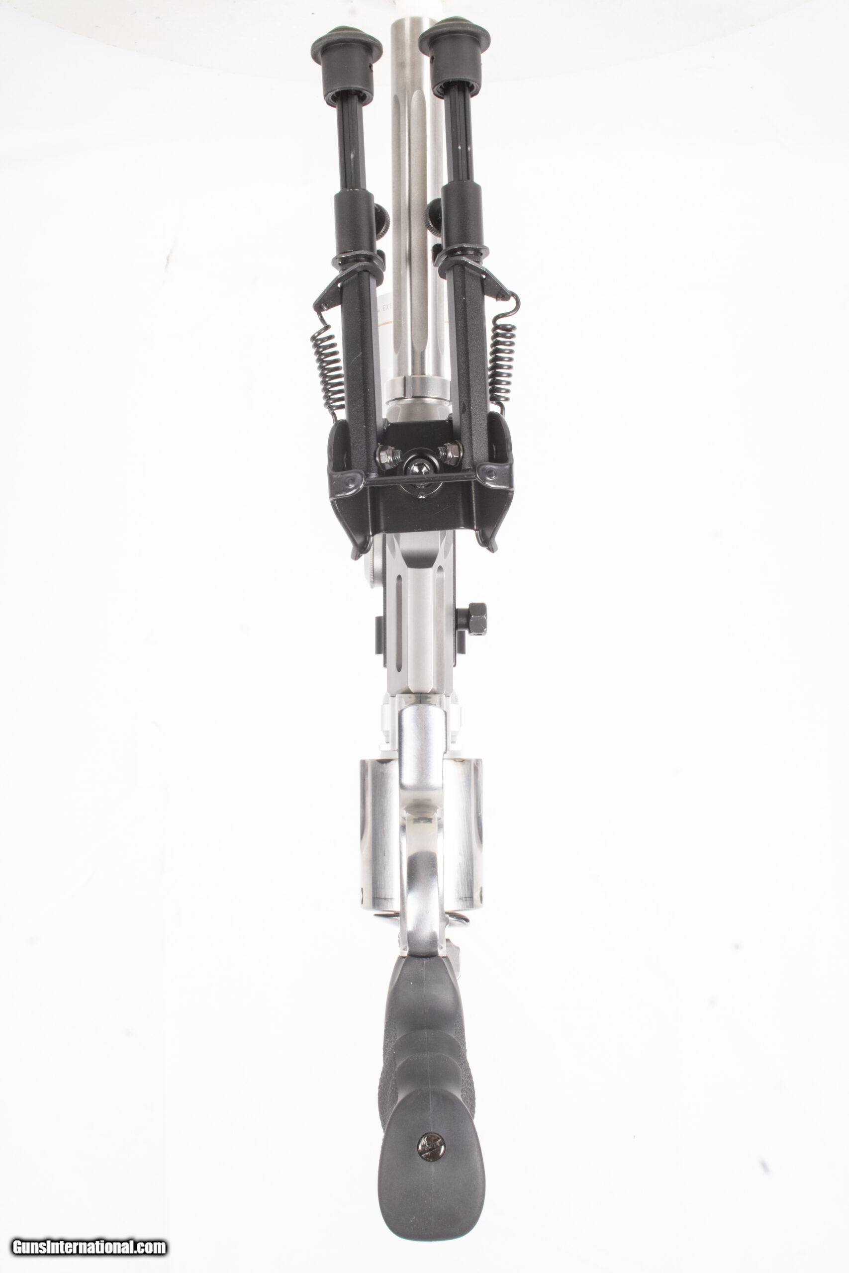 Description: Smith & Wesson Model 460 chambered for 460 S&W with 12-inch fluted barrel, five-shot fluted cylinder, stainless finish, adjustable sights, upper and lower accessory rail, bipod, Leupold 2.5-8x extended eye relief scope, and rubber grips. Action appears to be in good time and working order with bright, sharply rifled bore. The NRA grading condition for this USED firearm is Very Good. We ship domestically in the United States. Additional shipping rates apply to Alaska and Hawaii. Dury’s Lifetime Warranty: All firearms purchased from Dury’s Gun Shop, NEW or USED, are covered by a lifetime warranty. We will repair or replace, at our discretion, any firearm purchased from Dury’s Gun Shop, Inc. for as long as it is owned by the purchaser. This warranty is not transferable. WE BUY GUNS! NO COLLECTION TOO BIG OR SMALL FOR OUR GUNS INTERNATIONAL CUSTOMERS ALL OF OUR FIREARMS CAN BE PURCHASED DIRECTLY FROM OUR DURY’S GUNS SITE ! SOLD Manufacturer: Smith & Wesson Model: 460 Caliber Info: 460 SMITH AND WESSON MAGNUM Barrels: 12inches |