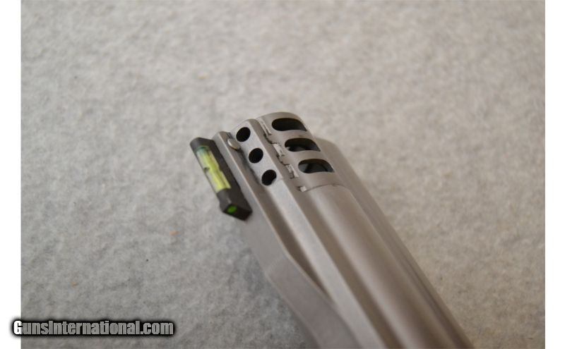Description: Overall this revolver is in very good condition. The surface of the metal is in great shape with only tiny handling marks aside from the rotation line on the cylinder. The bore is excellent with good rifling and shine. This revolver is also capable of firing .45 Long Colt and .454 Casull ammunition. SOLD Caliber Info: .460 Smith & Wesson Magnum Chambers: Revolving 5-shot cylinder. Metal Condition: Very good. Wood Condition: Grips are in excellent condition. Bore Condition: Excellent. Barrels: 8.38" Stainless steel with interchangable compensator. Triggers: Matte stainless with smooth surface. DA/SA Stock: Black rubber "combat style" grips. Weight: 4 1/2lbs Sights: HiViz green fiber optic front sight and adjustable notch rear. Extras: Comes with the factory case; both the compensators with the tool, and the brass bead front sight blade. Item Location: Green Bay, WI |