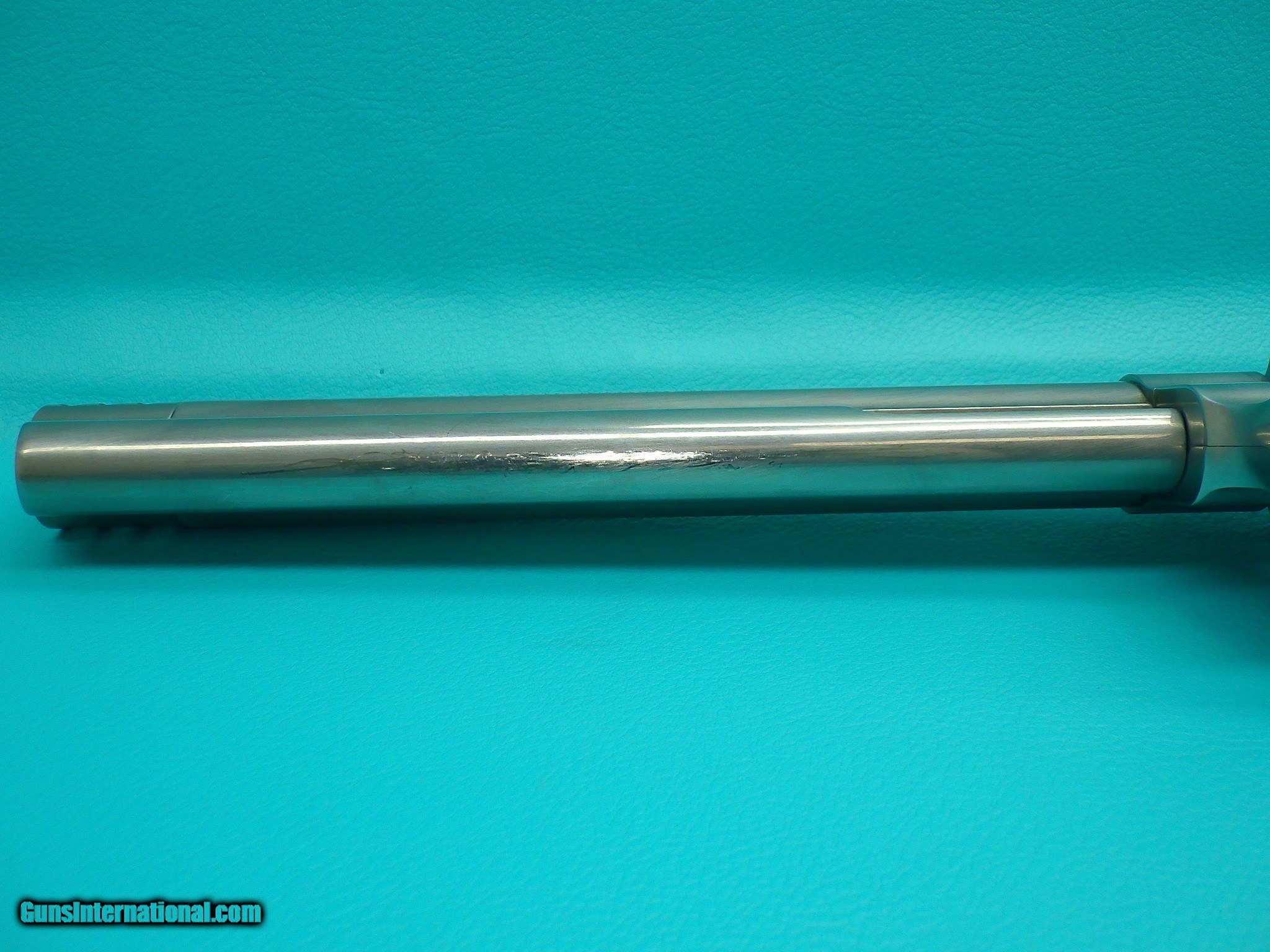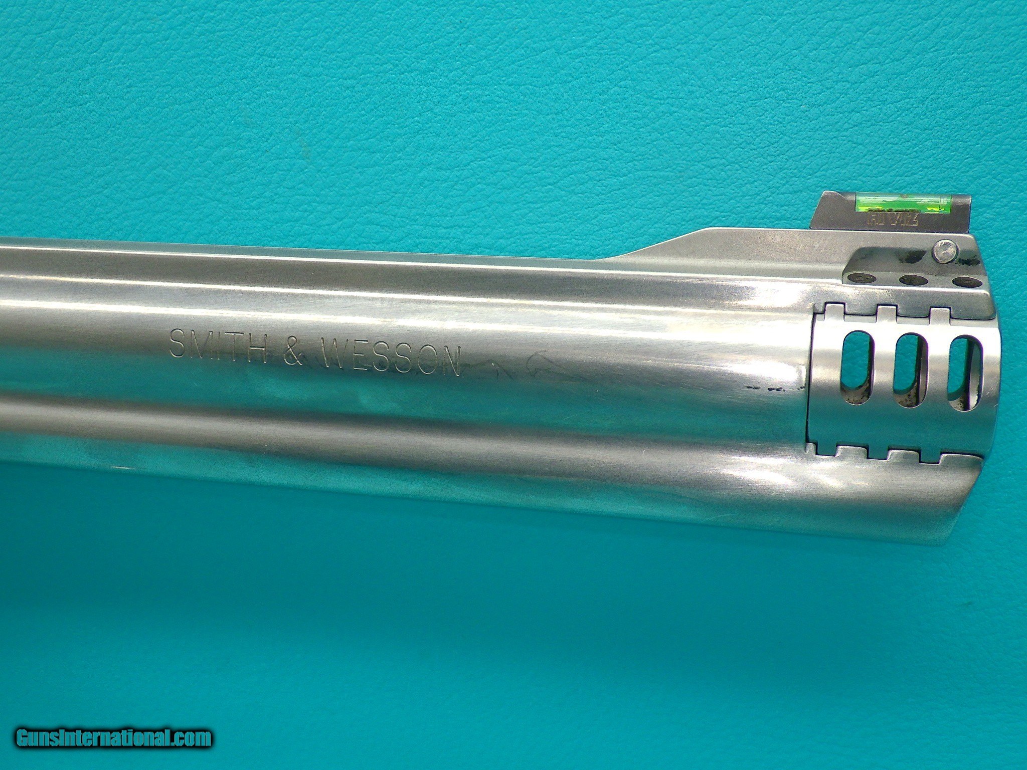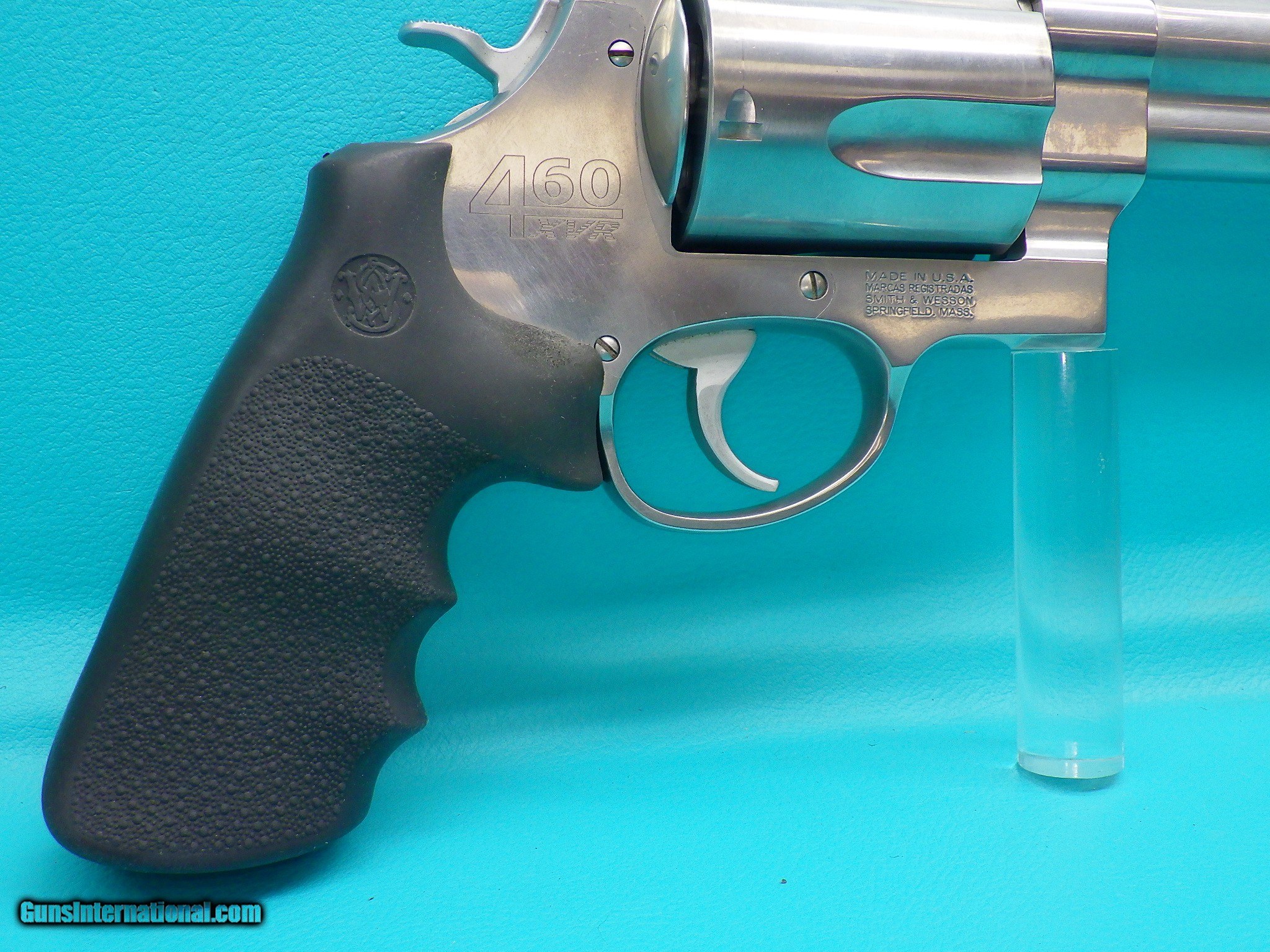 Description: ***SOLD***Smith and Wesson 460XVR .460 S&W Magnum 8 3/8" barrel revolver. This "X-treme Velocity Revolver" features single/double action firing, polished stainless steel finish, X Frame, adjustable rear sight, Hi Viz green fiber optic front sight, fluted 5 shot cylinder, internal key lock, Hogue textured rubber grip, and includes two compensators. The finish is bright with some signs of use/wear which the photos show. The revolver functions as it should with proper timing and lockup. The cylinder has smooth ejection action with shiny chambers. The barrel has sharp rifling with a shiny bore. Great for target shooting or hunting! Please refer to the photos for the overall condition. FFL is required, No handgun sales in MA. Shipping is $40.00. ***SOLD*** SOLD Handgun Caliber: .460 S&W Magnum Manufacturer: Smith and Wesson Model: 460XVR Serial Number: DAP3845 Barrel Length: 8 3/8 |