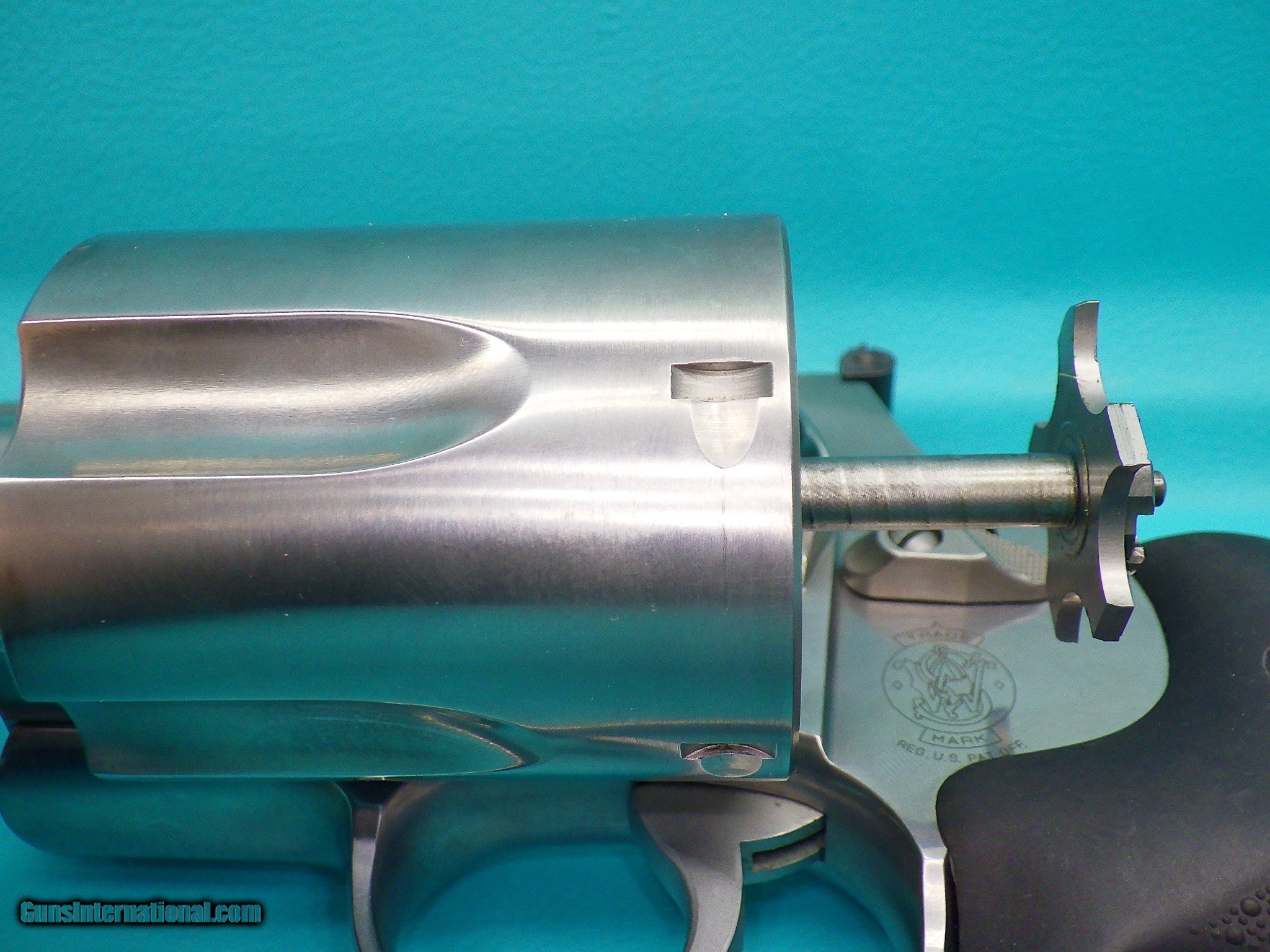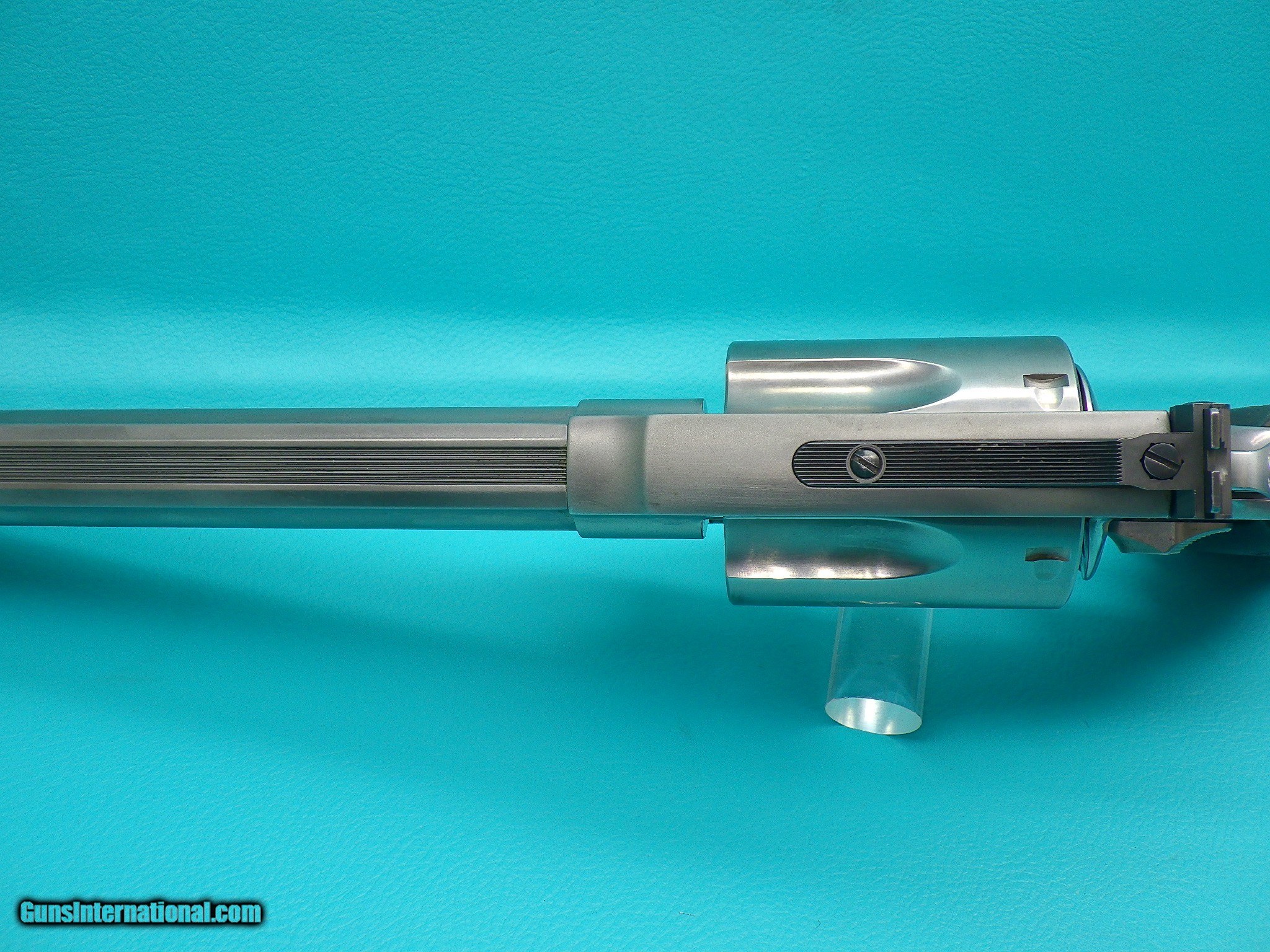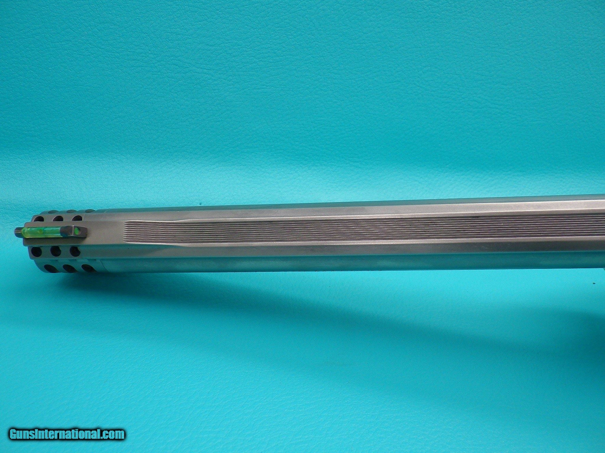 Description: ***SOLD***Smith and Wesson 460XVR .460 S&W Magnum 8 3/8" barrel revolver. This "X-treme Velocity Revolver" features single/double action firing, polished stainless steel finish, X Frame, adjustable rear sight, Hi Viz green fiber optic front sight, fluted 5 shot cylinder, internal key lock, Hogue textured rubber grip, and includes two compensators. The finish is bright with some signs of use/wear which the photos show. The revolver functions as it should with proper timing and lockup. The cylinder has smooth ejection action with shiny chambers. The barrel has sharp rifling with a shiny bore. Great for target shooting or hunting! Please refer to the photos for the overall condition. FFL is required, No handgun sales in MA. Shipping is $40.00. ***SOLD*** SOLD Handgun Caliber: .460 S&W Magnum Manufacturer: Smith and Wesson Model: 460XVR Serial Number: DAP3845 Barrel Length: 8 3/8 |