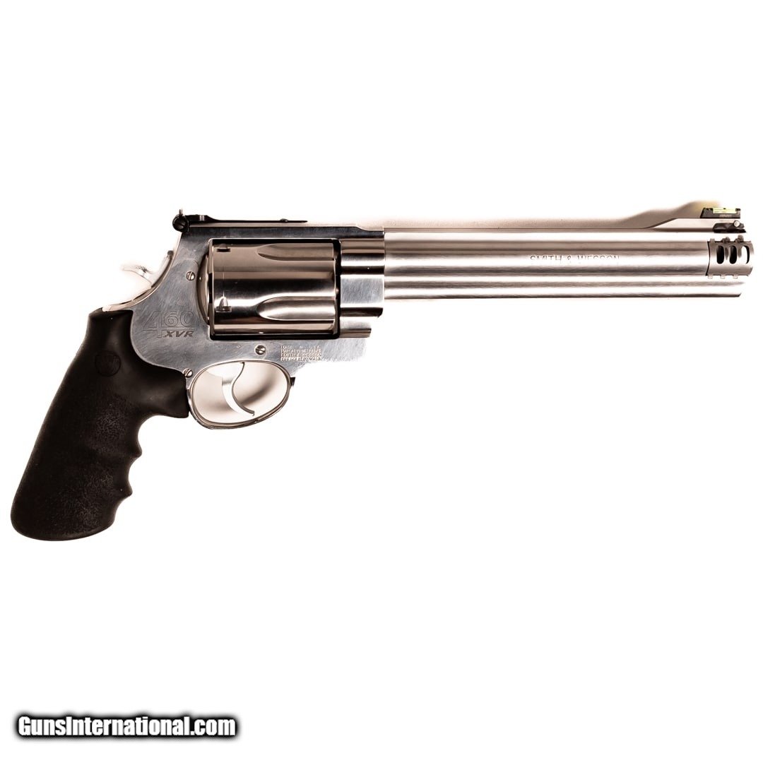 Description: Guns Listing ID: 735481 The Smith & Wesson 460 XVR is a big bore revolver chambered in 460 S&W Mag. Built on Smith & Wesson‚‚s largest steel frame, the X-frame, the 460 XVR is a suitable choice for hunting and personal protection in big game country. This 460 XVR includes two different muzzle brakes. Get the best bang for your buck when you get a Certified Used Firearm . When you see the Certified Used stamp on any of our firearms, you can be confident that you’re getting exactly what you want – a gun only in very good to excellent condition and held to the highest quality standard. All Certified Used Guns come with a ‘no questions asked’ return policy . PLUS, ALL CERTIFIED USED GUNS SHIP FREE SOLD Manufacturer: SMITH & WESSON Model: 460XVR Caliber Info: .460 S&W MAGNUM Condition: Used - Certified Barrels: 7.4 BARREL Finish: STAINLESS |
