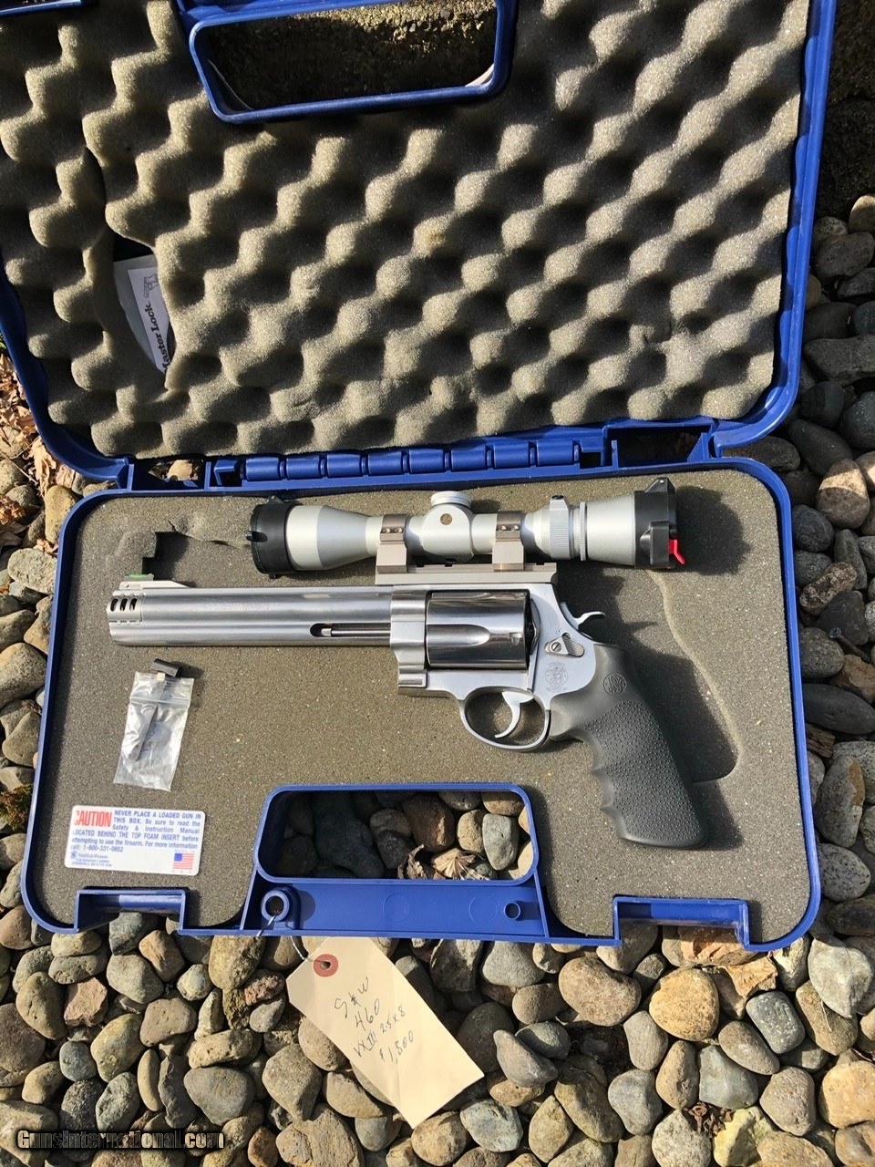 Description: Beautiful 1 of 100 S&W mod460 with Leupold VXIII 2.5x6 scope, in original box. Not more than one box of ammo has been put through it. Additional detailed photos on request. Revolver has received numerous "Handgun of the Year" awards. 120 rounds of factory ammo is available. Add $30 postage. SOLD Handgun Caliber: .460 S&W Magnum Manufacturer: Smith & Wesson Model: 460 Serial Number: WTU0657 Barrel Length: 8 3/8 Condition: Excellent Metal Condition: Excellent |
