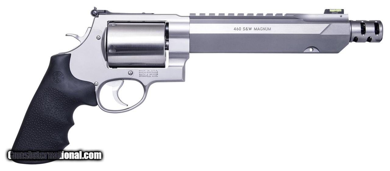Description: Manufacturer: Smith & Wesson Model: Performance Center® Model 460XVR™ HI VIZ® Fiber Optic Front Sight SKU: 11626 Caliber: .460 S&W Magnum Capacity: 5 Rounds Barrel Length: 7.5" Stainless Steel Muzzle Brake Cylinder: Stainless Steel Front Sight: HI VIZ® Fiber Optic Green Rear Sight: Adjustable White Outline Grip: Black Synthetic Action: Single/Double Action Frame: Stainless Steel X-Frame Overall Length: 15.2" Weight: 78.1 oz All items are factory new in box unless otherwise stated. Based on the information available to us, the above specifications describe this item to the best of our knowledge. For further information, please contact or visit the manufacturer's . SOLD |