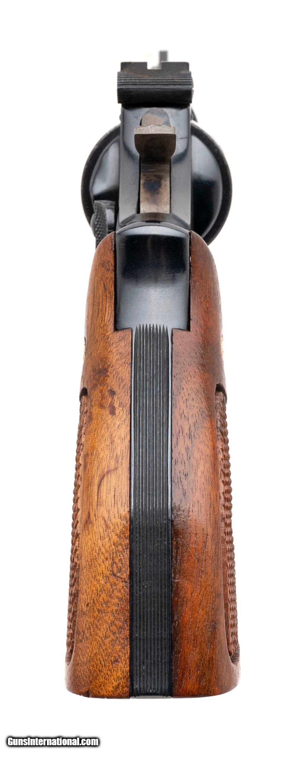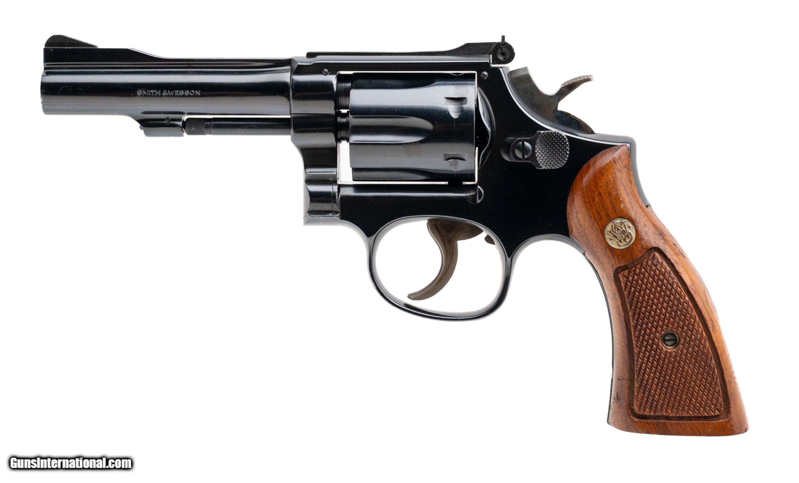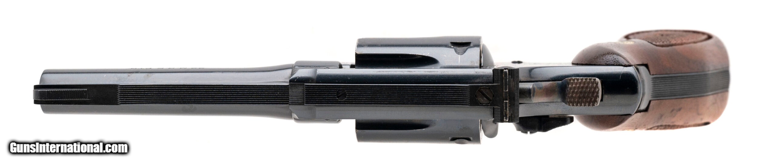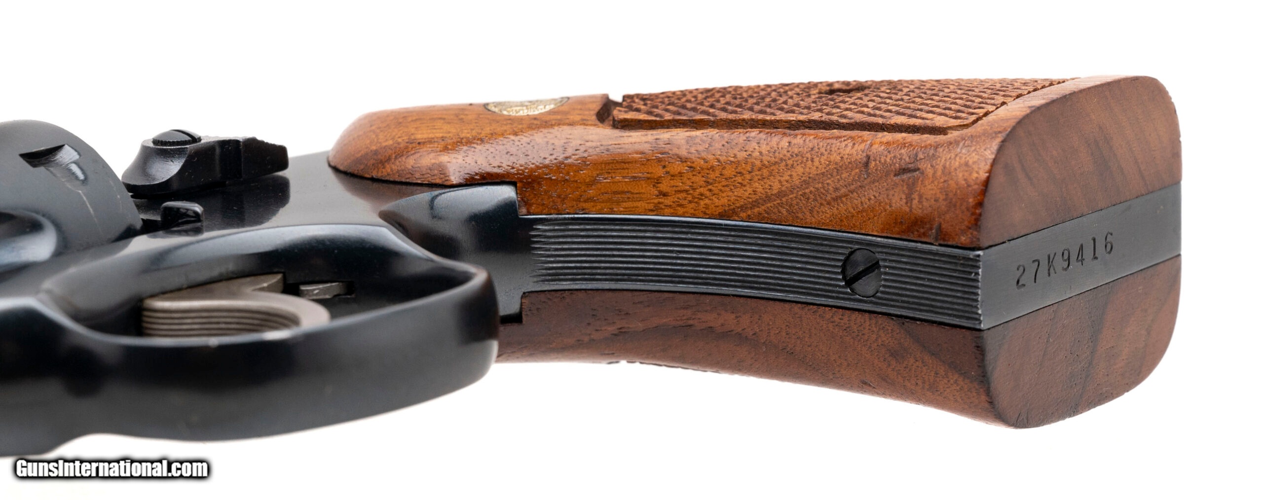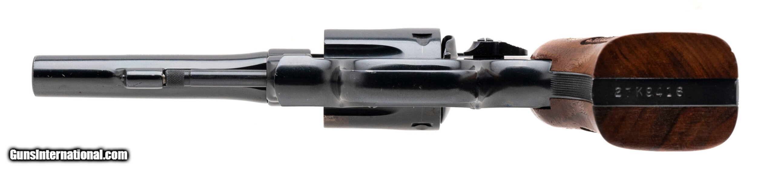 Description: "SN: 27K9416. Made circa 1970s, .22 Magnum, with a 4"" pinned barrel. Bore is bright with strong rifling. Scarce K-frame revolver with pinned barrel and recessed cylinder. Cylinder shows wear but blued finish is in good condition. Checkered wood grips are in very good condition. Overall condition is good. SOLD |