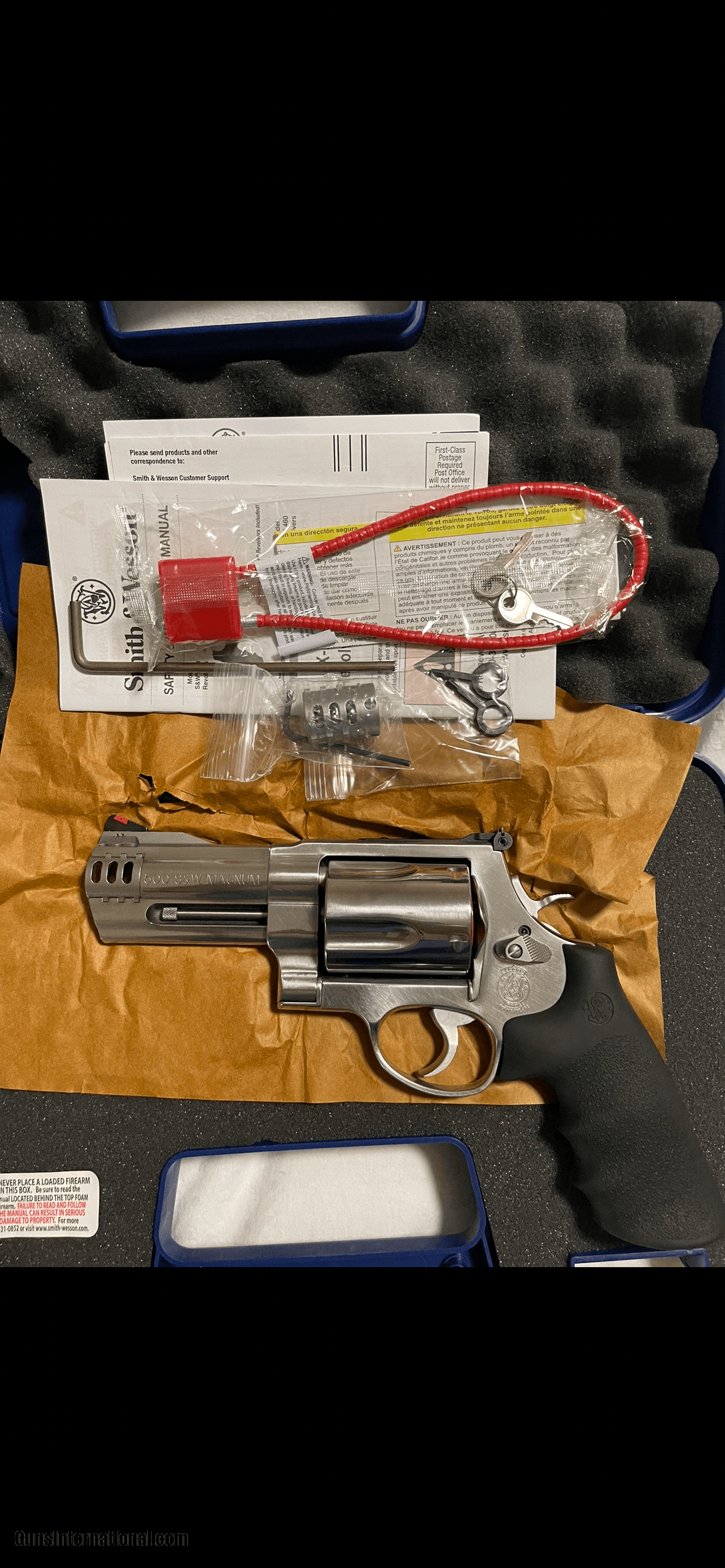 Description: *** NEW *** UNFIRED ***SMITH & WESSON M500 REVOLVER STAINLESS STEEL BEAUTIFUL WITH 4" BARREL WITH 200 CARTRIDGES. IF you have any questions please call or email me at arepamonk at icloud dot3526539994 ONCE I RECEIVE THE FULL PAYMENT I'LL SHIP THE FIREARM TO THE NEAREST FFL DEALER WITHIN A DAY OR TWO. I'll INSURE AND SHIP . SOLD Handgun Caliber: .500 S&W Magnum Manufacturer: Smith & Wesson Model: 500 Serial Number: DNF5364 Condition: NEW Finish: Stainless steel |