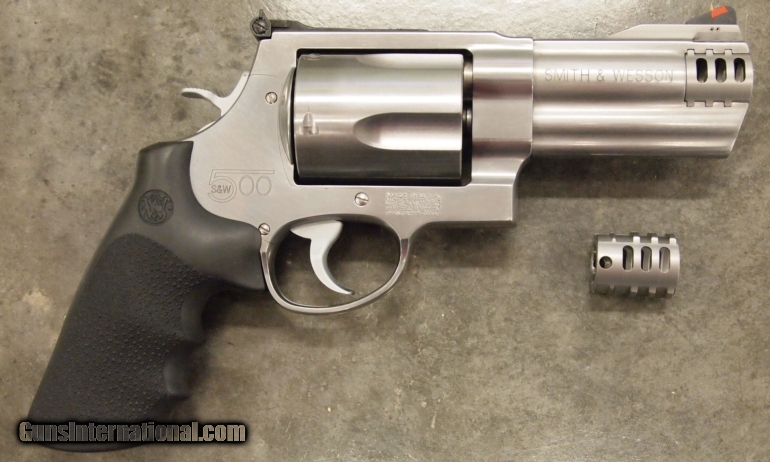 Description: S&W 500, 4" BARREL, COMES WITH 2 COMPENSATORS; 1 FOR LEAD BULLET AND 1 FOR JACKETED BULLET AMMUNITION. MUZZLE ENERGY CAPABILITY IN EXCESS OF 2000FT/LB. APPROXIMATE WEIGHT IS 56OZ. COME WITH ORIGINAL BOX AND PAPERWORK. S&H$25.00 ADD 3% FOR CREDIT CARDS SOLD |