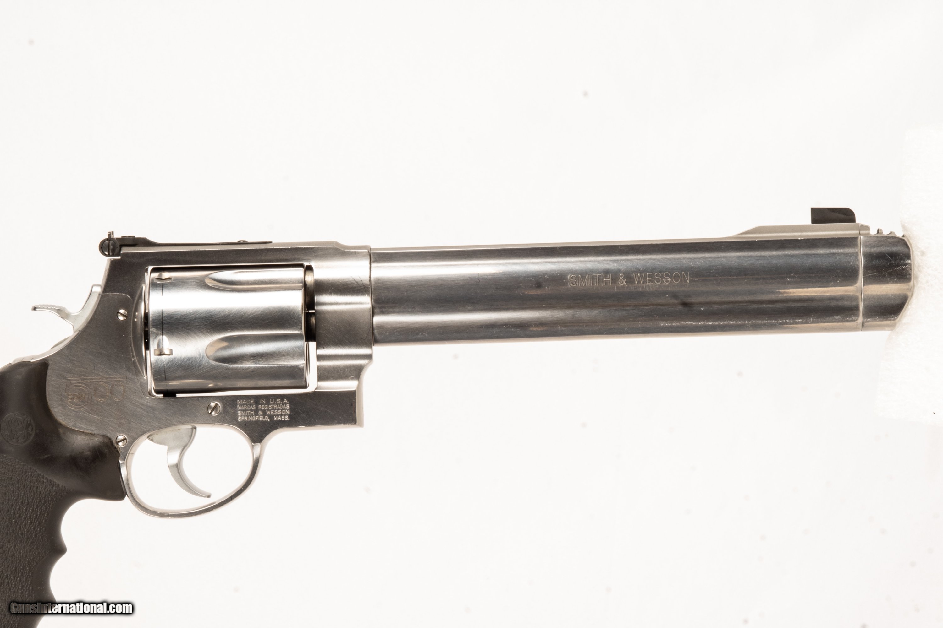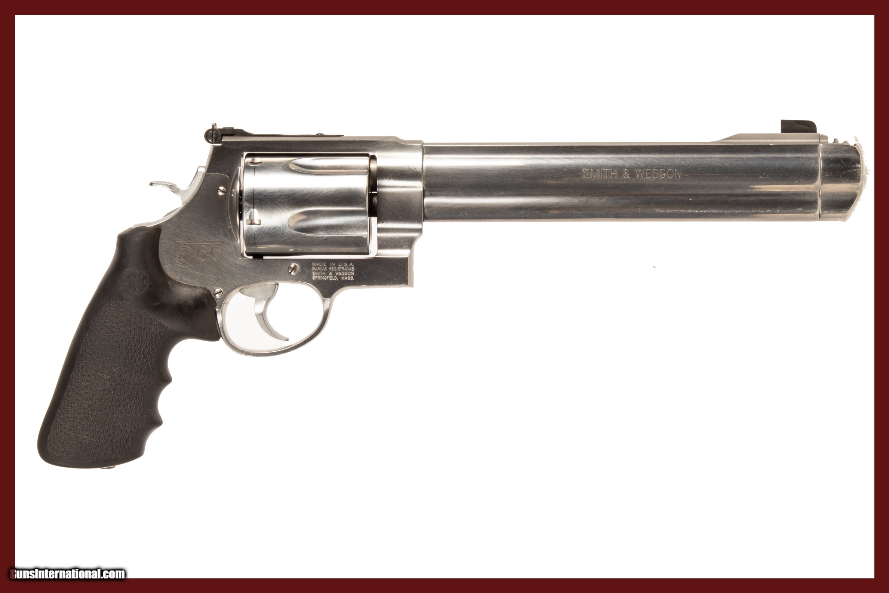 Smith & Wesson 500 chambered in 500 S&W with a 9 inch barrel and a bright & shiny bore. This is a used firearm that is in very good condition and is covered by Dury's Lifetime Warranty.