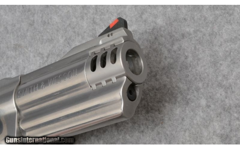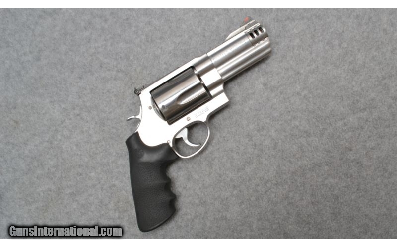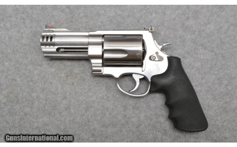 Description: Developed to take on the biggest of game animals, Smith & Wesson's X-Frame Centerfire Pistols rank among the world's most powerful production revolvers. SOLD Caliber Info: .500 S&W Chambers: Five shot revolver. Metal Condition: Some minor use or handling marks. Bore Condition: Strong lands and grooves. Barrels: Four inch (with break). Triggers: Single for double or single action. Weight: 2 Lb, 1 Oz. Sights: Fully adjustable white outline rear and red insert front. Item Location: Anchorage, AK |
