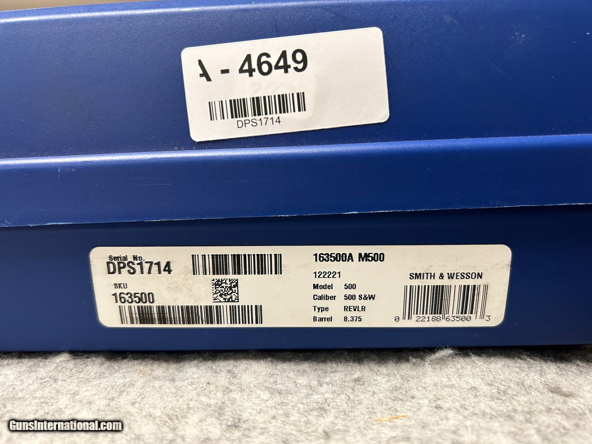 Description: Guns Listing ID: 893936 Very lightly used 500 S&W Magnum, does come with the leather holster. No major scratches. Just light swirls. Ported 8.375\" barrel. SOLD Manufacturer: SMITH & WESSON Model: 500 S&W MAGNUM 8 Caliber Info: 5K Condition: Used - Non-Certified Barrels: 8.375 BARREL Finish: STAINLESS |