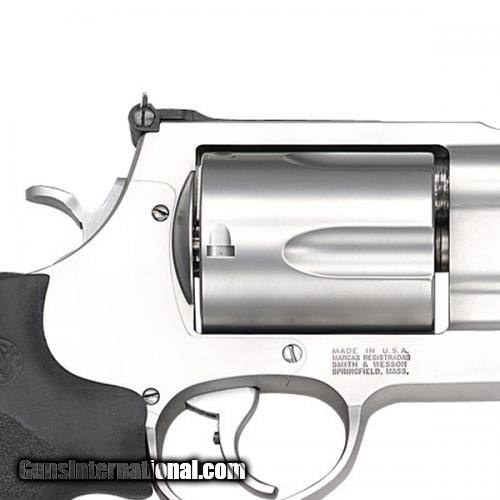 Description: Guns Listing ID: 24967 Built on the massive X-frame and dubbed by the company as the most powerful production revolver in the world the Smith Wesson 500 is a single-double action revolver chambered in .500 SW Mag. Constructed of stainless steel it features a 5-round capacity Hogue grips with finger grooves to reduce felt recoil and adjustable rear sights. For greater stability and accuracy the rifled tube is housed inside a barrel shroud and a centerpin in the back of the cylinder and a ball detent in the frame contribute to lockup. The 500 is available in several variants with numerous barrel lengths ranging from 2.75 to 10.5. A handgun capable of delivering tremendous power the 500 is well-suited for big game hunting. Details Action SADA - Caliber .500 SW Magnum - Capacity 5 - Finish Stainless - Material Steel - Grips Black Synthetic - Sights Orange Ramp Adjustable - Barrel Length 10.5\" - Overall Length 18\" - Weight 79.3 oz. - Chrome Hammer - Chrome Trigger with Trigger Stop - Muzzle Brake - PC Tuned Action - In 2003 the gunsmiths and engineers at Smith Wesson wanted to deliver maximum power for serious handgun hunters. The power they sought required an entirely new frame the massive X-Frame and was the basis for the new Model SW 500 the most powerful production revolver in the world. Performance Center guns originate from standard designs or are created from the ground up. From hand-cutting and fitting to fine tuning for precision these firearms are top performers. Products from the Performance Center are the ultimate expression of old-world craftsmanship blended with modern technology. SOLD Manufacturer: SMITH & WESSON Model: 500 Caliber Info: 500 SMITH & WESSON MAGNUM Condition: new Barrels: 10.5" barrel Finish: STAINLESS |