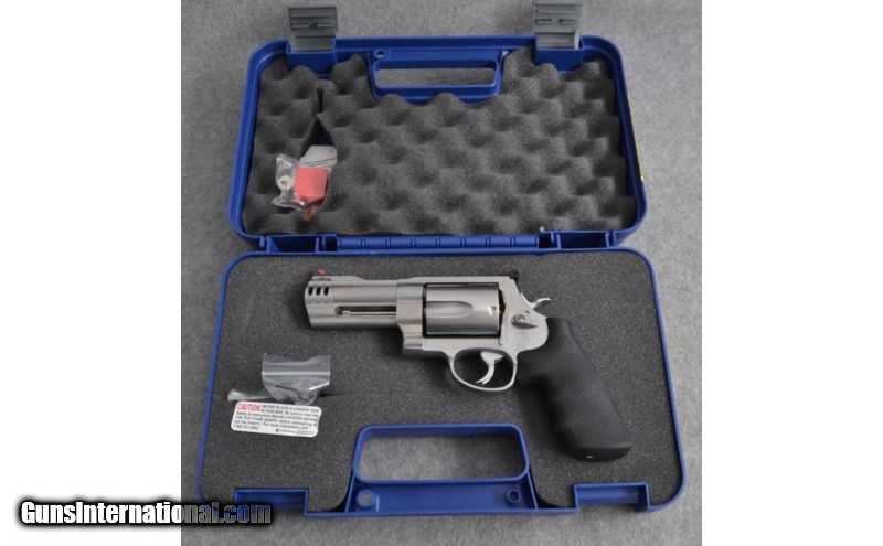 Description: Very nice condition Smith & Wesson Model 500 in .500 Magnum. Includes factory box and all original accessories. SOLD Caliber Info: .500 Magnum Metal Condition: Very good with slight handling marks. Bore Condition: Very good, bright and shiney Barrels: 4 Inches. Stock: Grips - S&W black synthetic with finger grooves. Weight: 3 Lbs 8 Oz Sights: Front ramp with prange insert, rear adjustable square notch white outline. Extras: Factory box and all original accessories. Item Location: Lone Tree, CO |