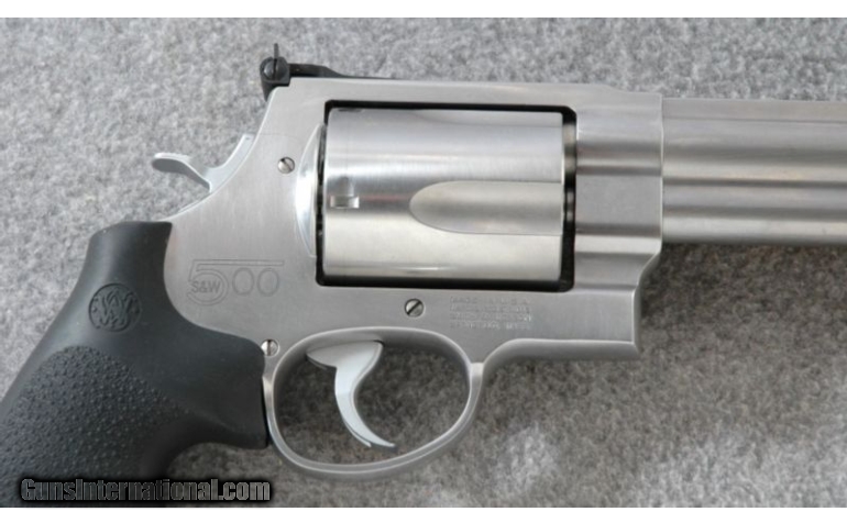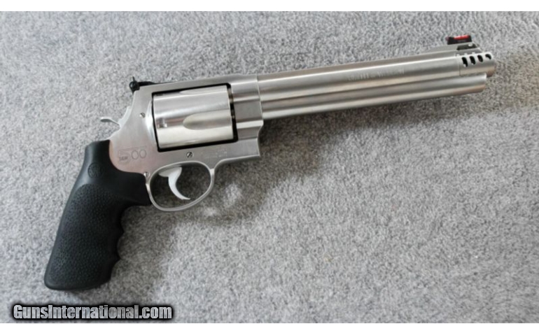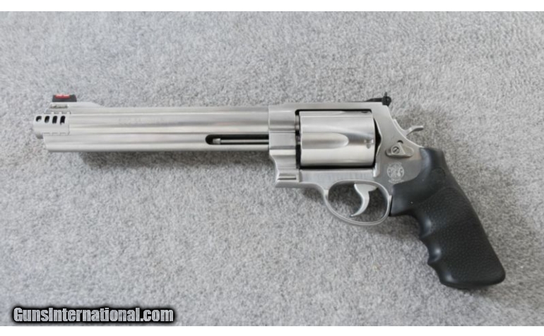 Description: SOLD Caliber Info: .500 S&W Mag. Metal Condition: Very good with some fine scratches and turn line on the cylinder Bore Condition: Excellent, sharp and bright Barrels: 8 3/8 inch Weight: 69 oz. Sights: Adjustable rear, blade front with fiber optic stick Item Location: Lehi, UT |