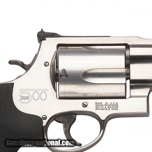 Description: Guns Listing ID: 54272 Built on the massive X-frame and dubbed by the company as the most powerful production revolver in the world the Smith Wesson 500 is a single-double action revolver chambered in 500 SW Mag. Constructed of stainless steel it features a 5-round capacity Hogue grips with finger grooves to reduce felt recoil and adjustable rear sights. For greater stability and accuracy the rifled tube is housed inside a barrel shroud and a centerpin in the back of the cylinder and a ball detent in the frame contribute to lockup. The 500 is available in several variants with numerous barrel lengths ranging from 2.75\" to 10.5\". A handgun capable of delivering tremendous power the 500 is well-suited for big game hunting. Details Action SADA - Caliber .500 SW Magnum - Capacity 5 - Finish Stainless - Material Steel - Grips Synthetic - Sights Interchangable Adjustable - Barrel Length 8.38\" - Overall Length 15\" - Weight 71.9 oz. - Most Powerful Production Revolver in the World Today - Massive .500 SW Magnum Cartridge with 2600 ftlb. Muzzle Energy - A Hunting Handgun For Any Game Animal Walking - Recoil Tamed with Effective Muzzle Compensator - Internal Lock - In 2003 the gunsmiths and engineers at Smith Wesson wanted to deliver maximum power for serious handgun hunters. The power they sought required an entirely new frame the massive X-Frame and was the basis for the new Model SW500 the most powerful production revolver in the world. This ushered in the era of the big gun and was only the beginning. For ultimate power and velocity theres nothing even close to an X-Frame model handgun. SOLD Manufacturer: SMITH & WESSON Model: S&W500 Caliber Info: .500 S&W MAG Condition: new Barrels: 8.4 BARREL Finish: STAINLESS |