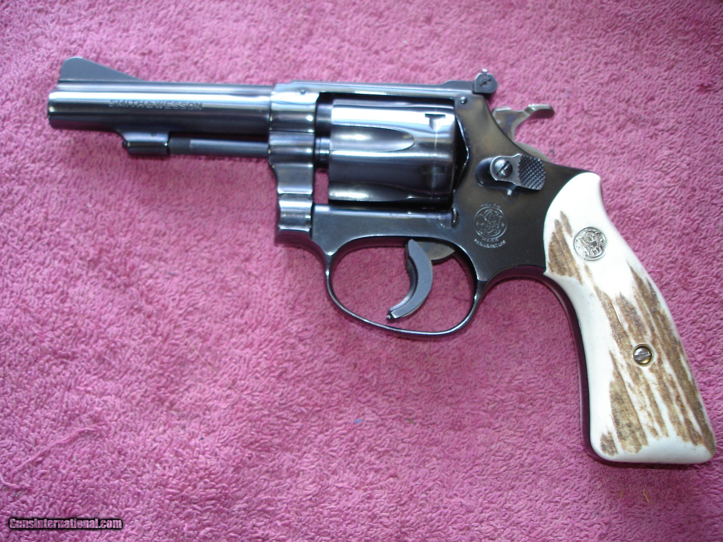 Description: Out of my collection I have for sale, my Smith & Wesson Model 51 J-frame .22 WMRF Cal. MFG 1970. Mint in the Original Box with all paper work Etc. 31/2" BBl. Built on the J-Fame, 6- Rounds.22 WMRF Ctgs. Adjustable Blue Sights .22/32 Kit Gun M.R.F.Square Butt Grips, Comes with its original Walnut Magna Stocks and a Beautiful Set of Stag Stocks by Patrick Grashorn Custom Stocks. I have used it very little. These are real hard to find! It also comes with a Nice Blue Trigger Guard. I added all the extras year ago. 99% Bright Blue, A Wounderful Little Smith & Wesson. Price is $1499.00 Shipping & Ins, To your FFL is $39.00 SOLD |